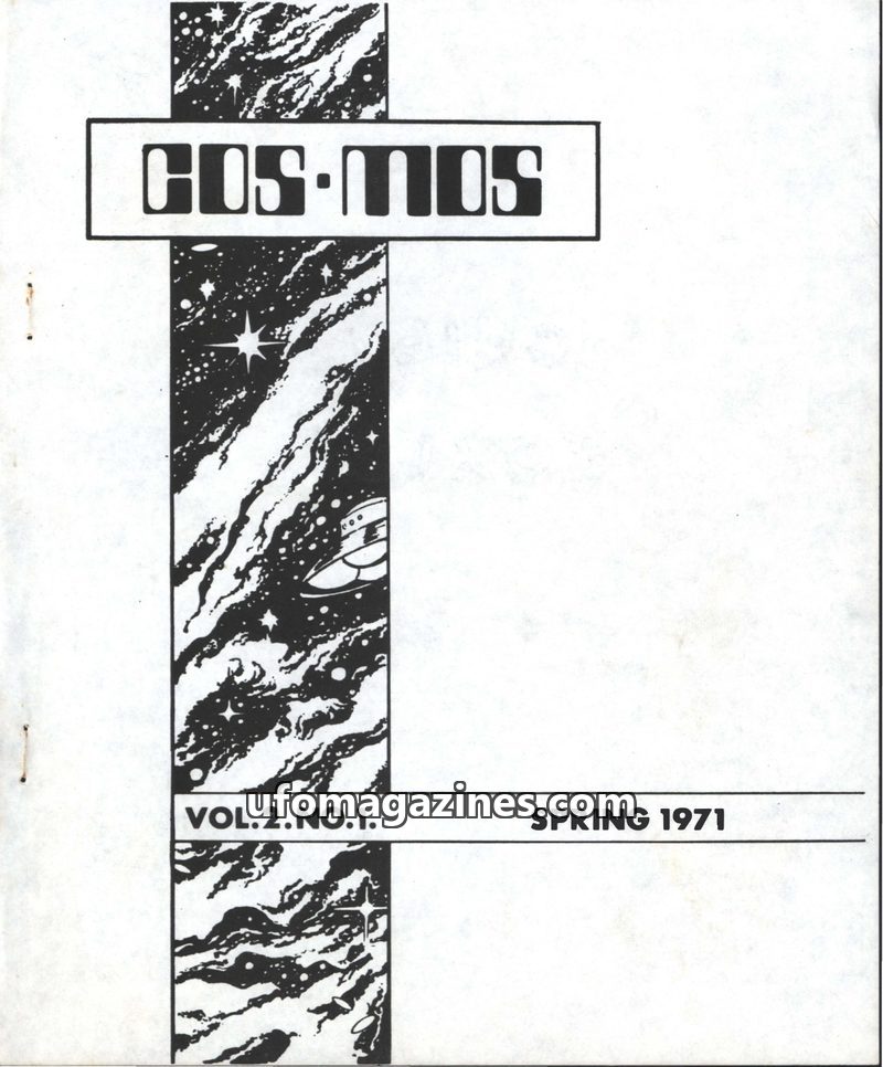 This issue of COS-MOS, dated Spring 1971, features a collection of worldwide UFO sightings and related reports from 1970. It includes detailed accounts from Canada, England, Austra