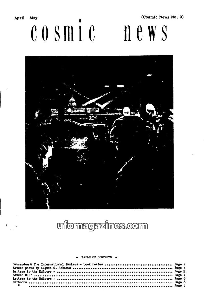 This issue of Cosmic News (No. 9) delves into the alleged connections between UFO phenomena and a powerful, hidden group known as the Illuminati or International Bankers. It discus