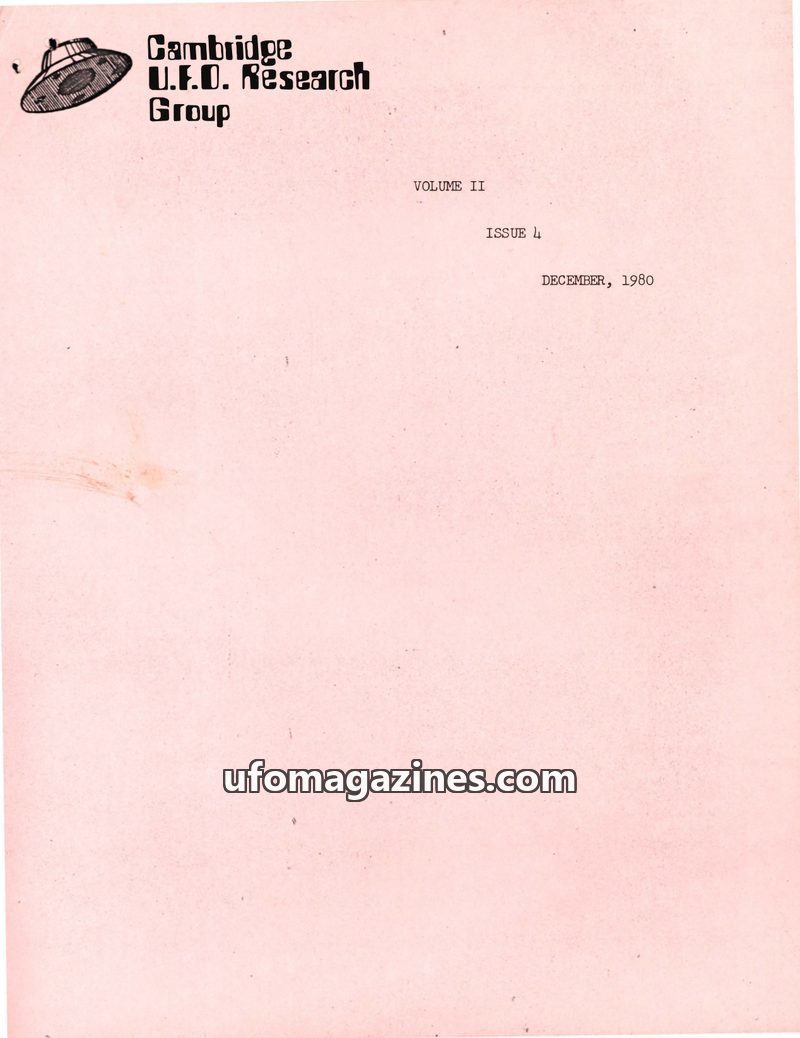 This issue of the Cambridge UFO Research Group Newsletter from December 1980 covers various UFO-related activities and news. It details David Haisell's efforts to establish a Canad