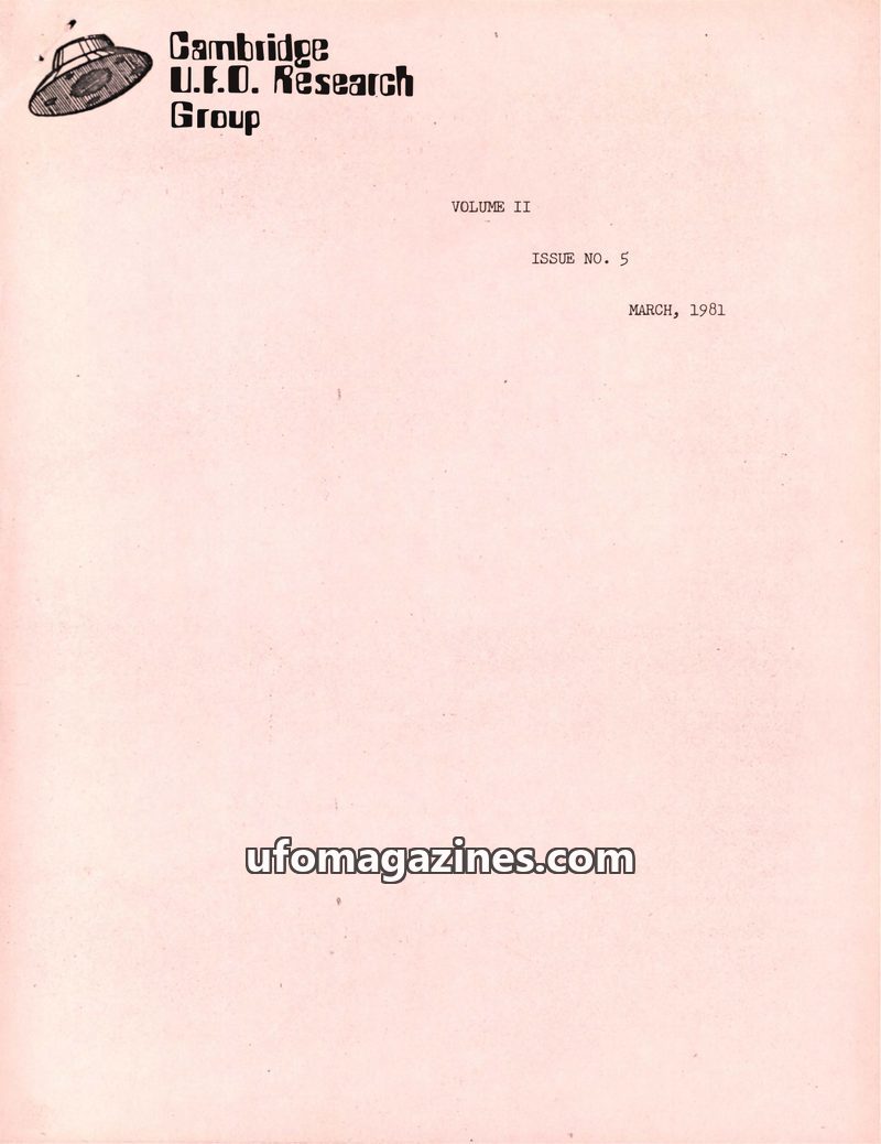 This issue of the Cambridge U.F.O. Research Group Newsletter from March 1981 covers the January meeting's discussion of dead alien body photographs and Cliff Cunningham's attendanc