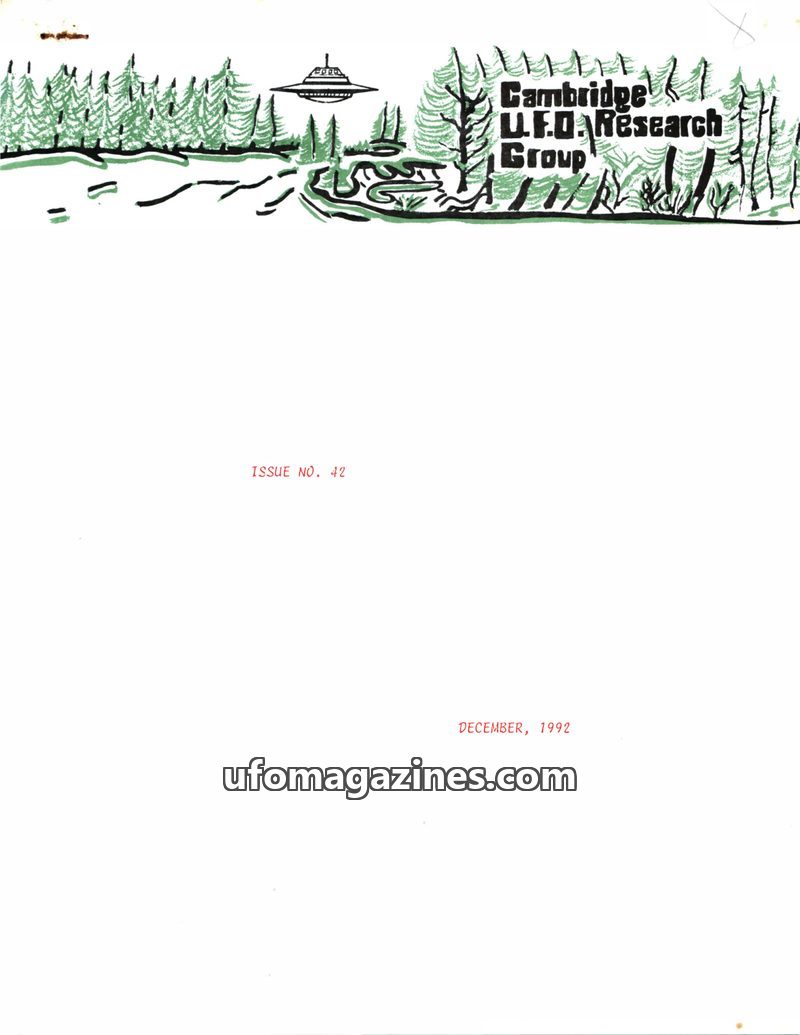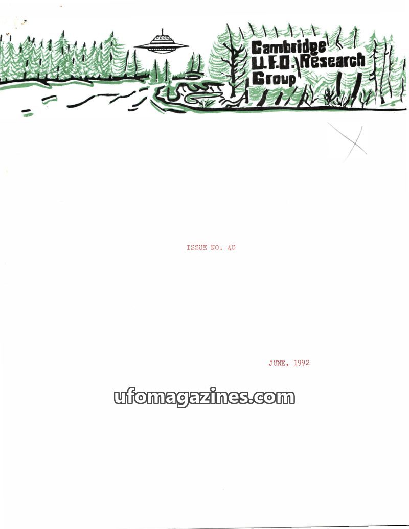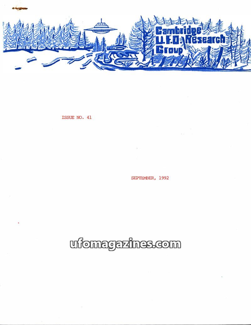 This issue of the Cambridge UFO Research Group Newsletter (Issue 41, September 1992) highlights recent media attention received by the group, including interviews and news coverage