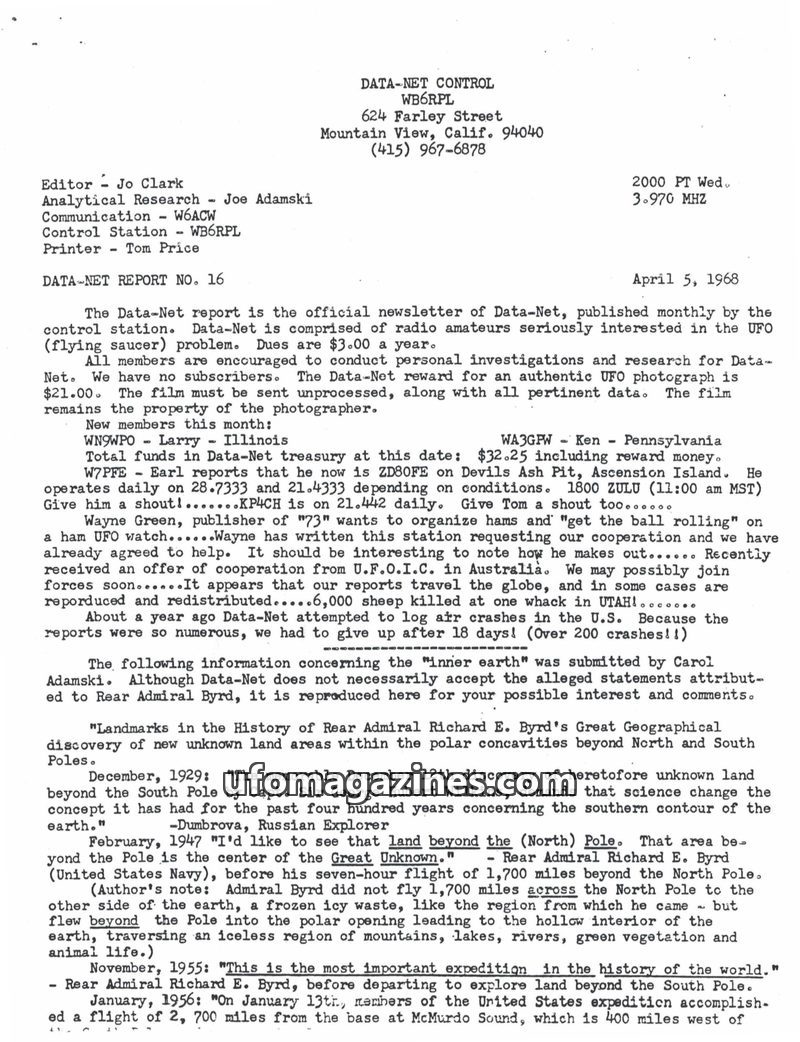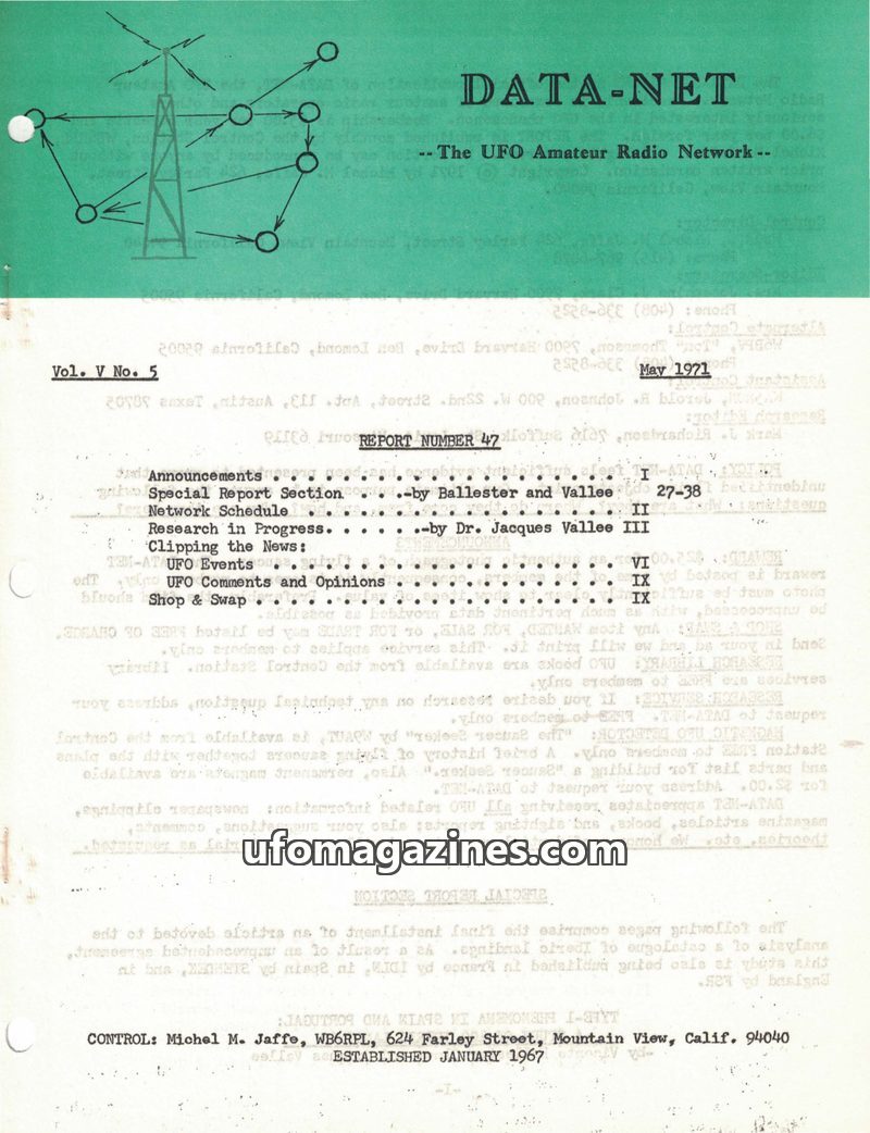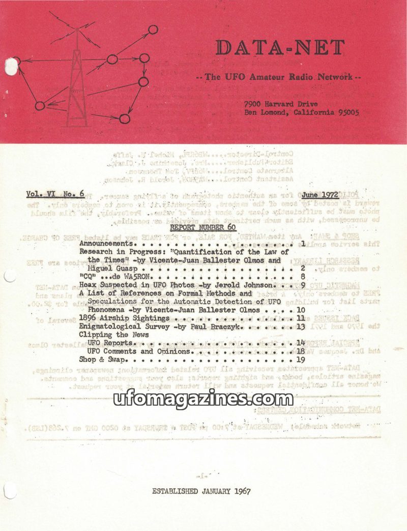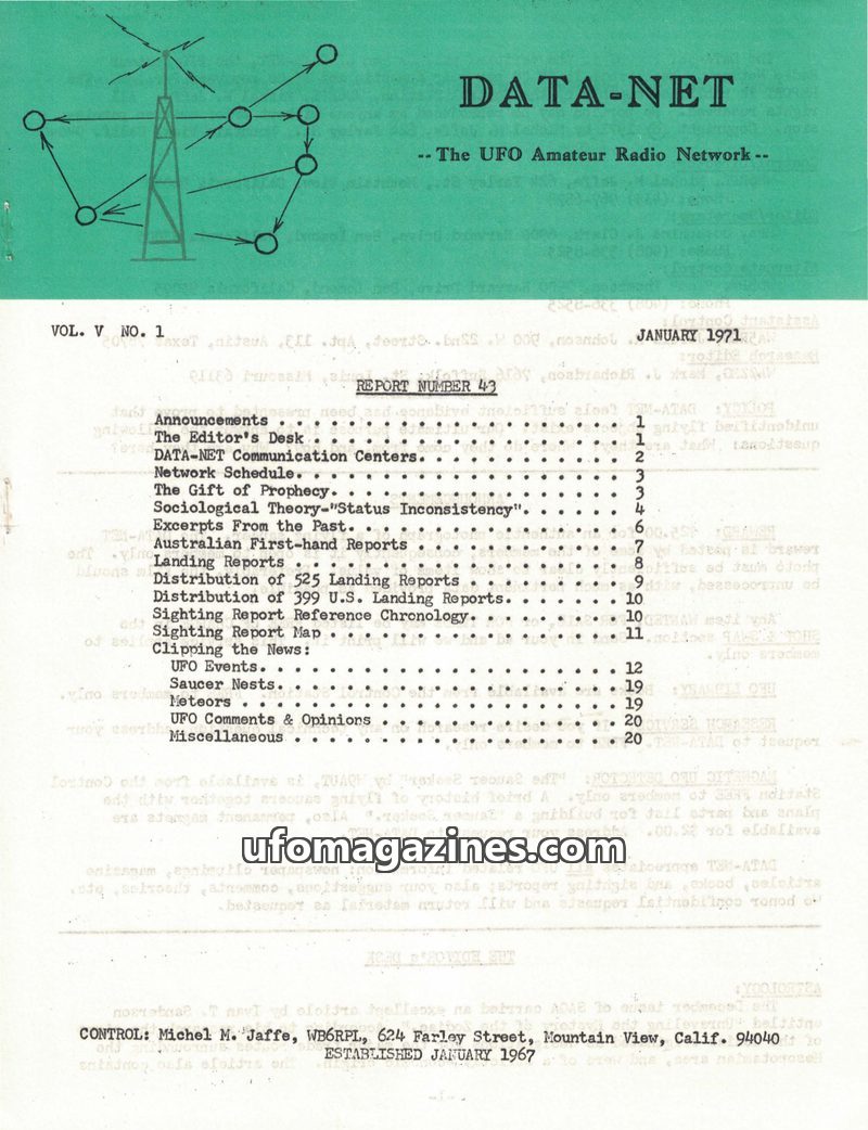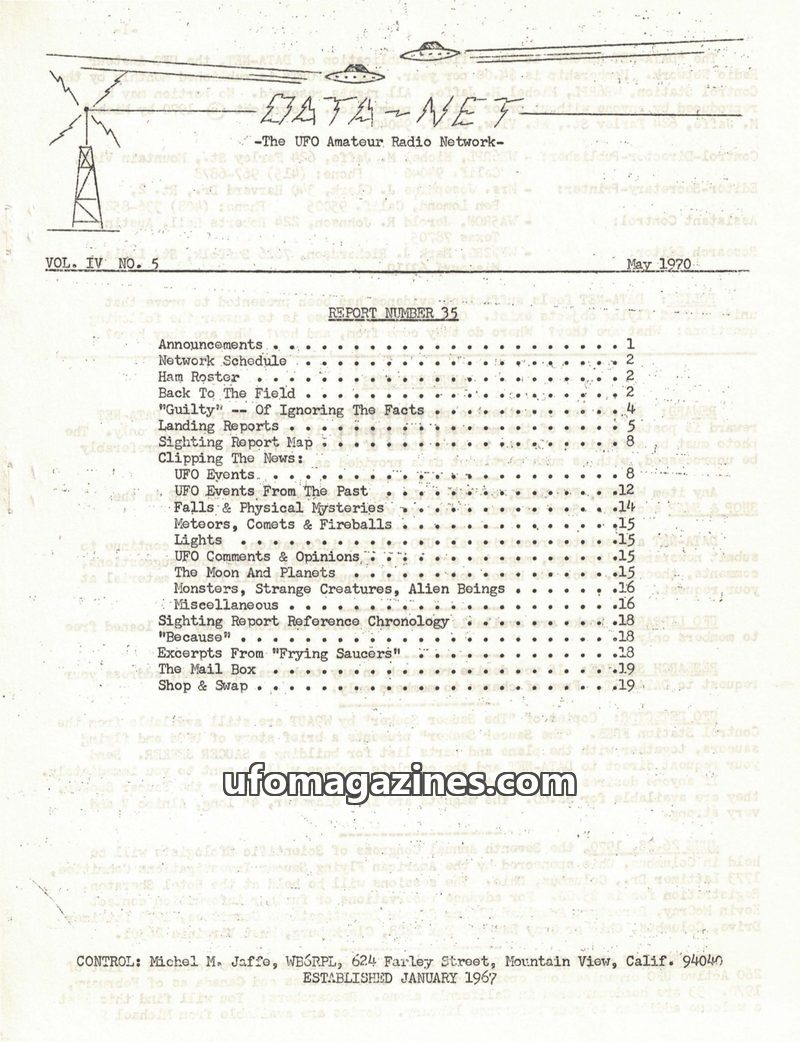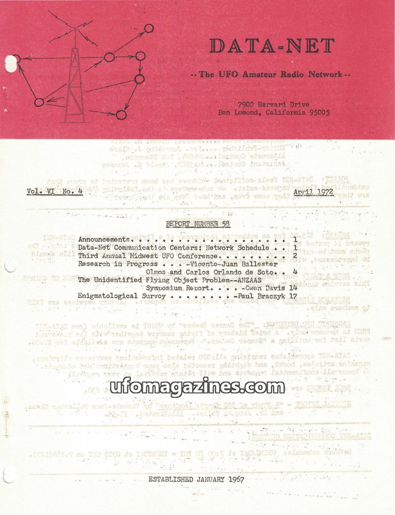 This issue of DATA-NET, the UFO Amateur Radio Network's publication, covers a range of UFO-related topics. It includes an article on mysterious tektites and Dr. Virgil Barnes's the