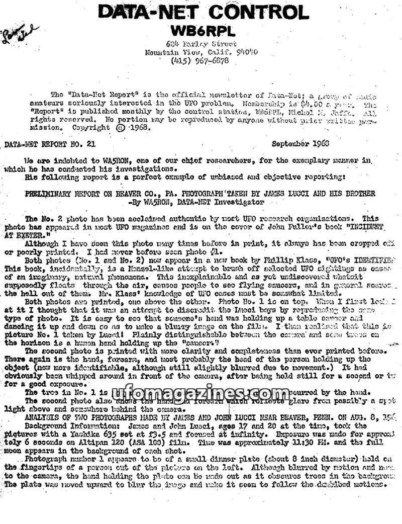 This issue of DATA-NET CONTROL features an in-depth analysis of the Lucci photographs, questioning their authenticity and presenting arguments for them being a hoax. It also delves
