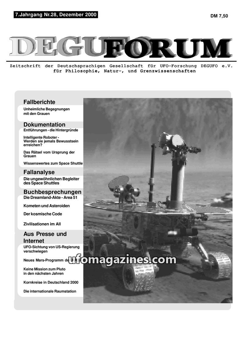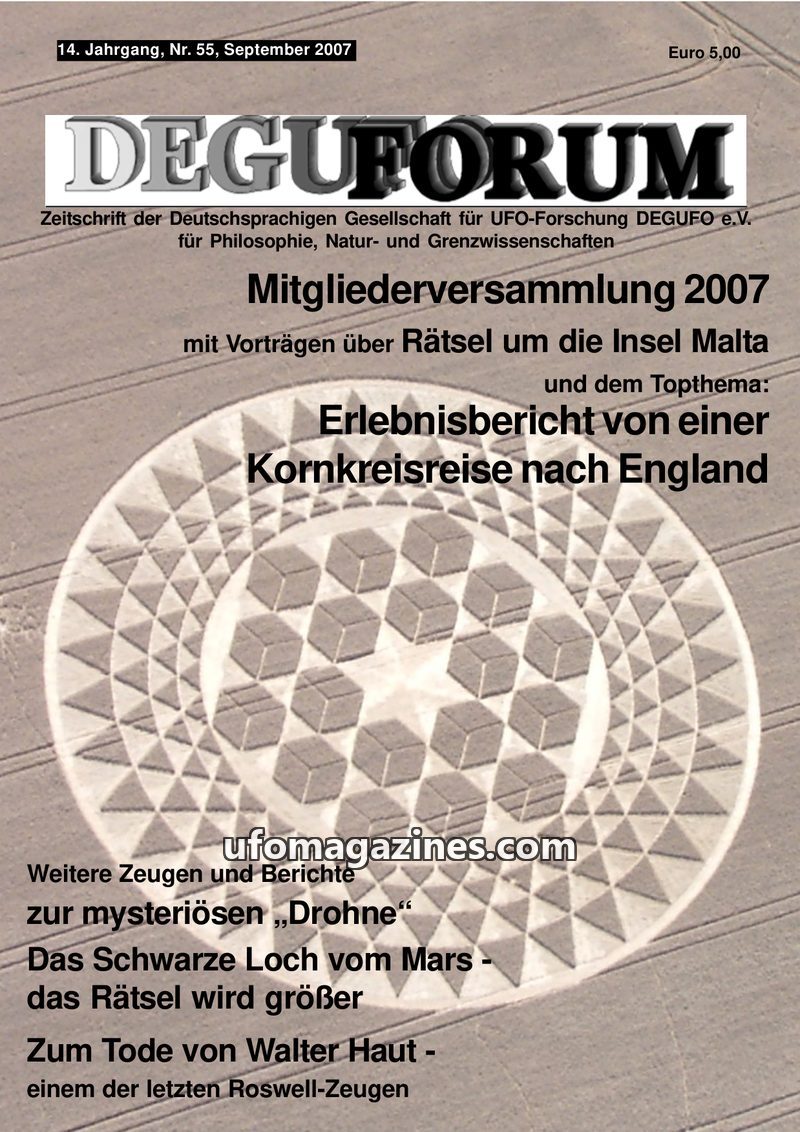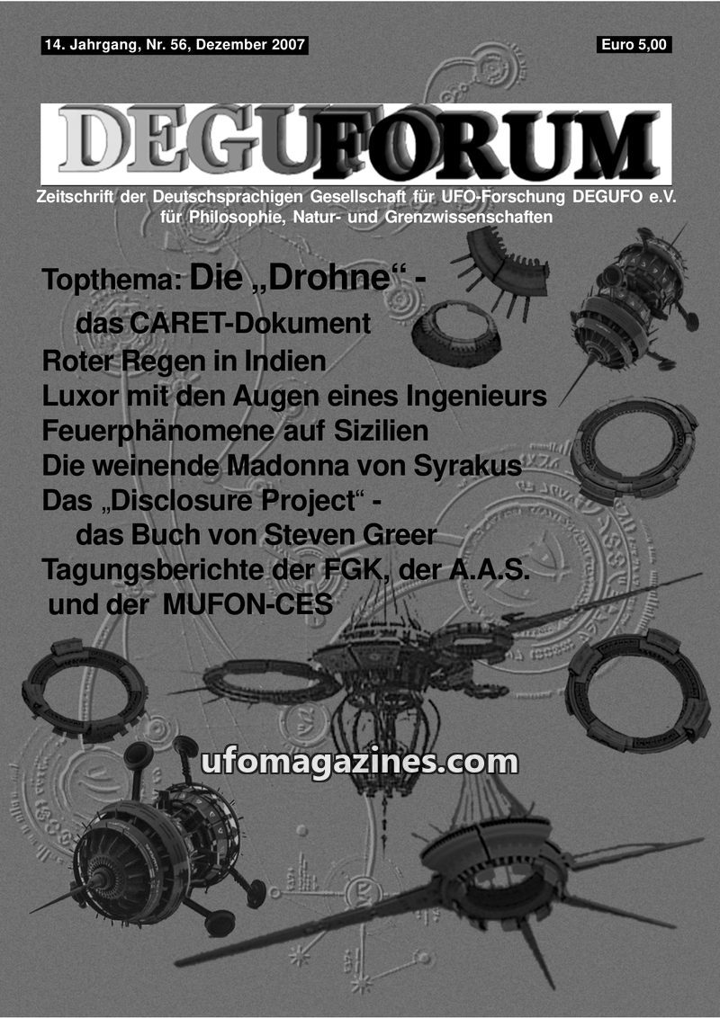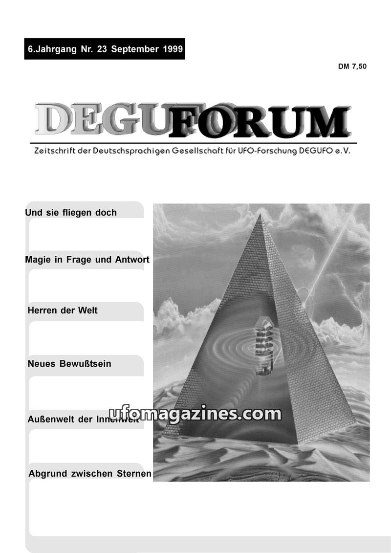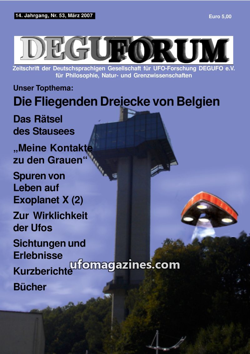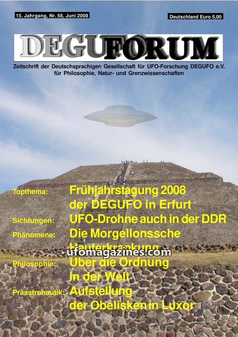 This issue of DEGUFORUM delves into the UFO phenomenon from various angles. It clarifies the mission and goals of the DEGUFO, emphasizing a critical yet open approach to UFOs as pa