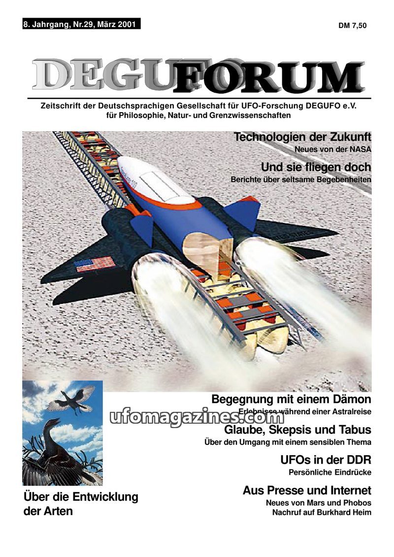 This issue of DEGUFORUM delves into a variety of topics, including futuristic technologies from NASA, reports of strange aerial phenomena, and personal accounts of paranormal exper