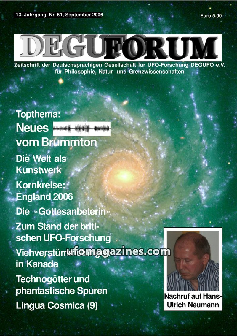 This issue of DEGUFORUM, dated September 2006, focuses on the enigmatic 'Brummton' phenomenon, with Dipl.-Ing. Kurt Diedrich presenting his research and a speculative explanation.