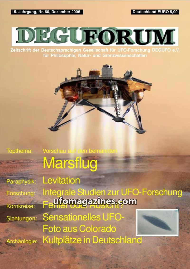 This issue of DEGUFORUM, dated December 2006, covers a range of topics including a preview of manned Mars missions, exploring the history and future of Mars exploration, and the sc