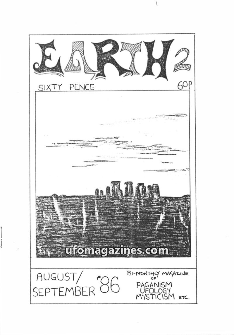 This issue of Earth magazine, dated August/September 1986, covers a range of topics including ufology, paganism, and mysticism. It features articles on paranormal experiences, such