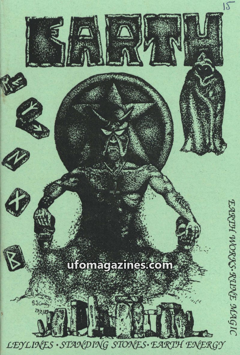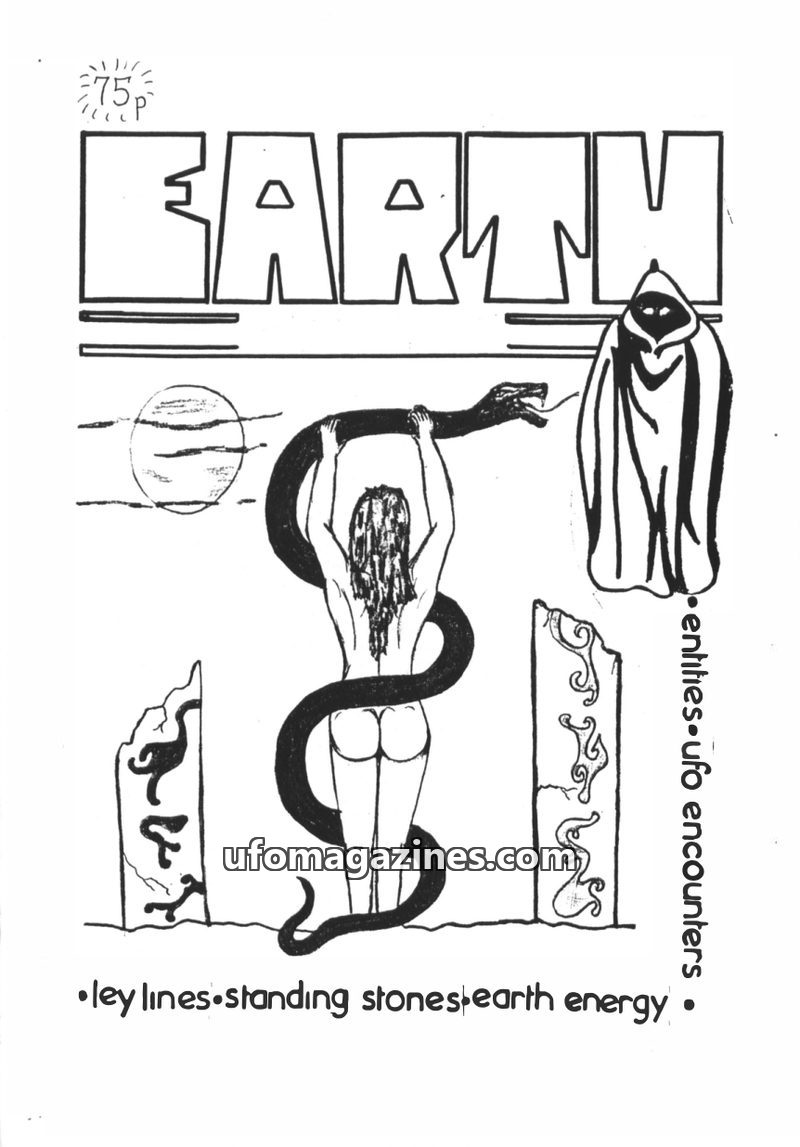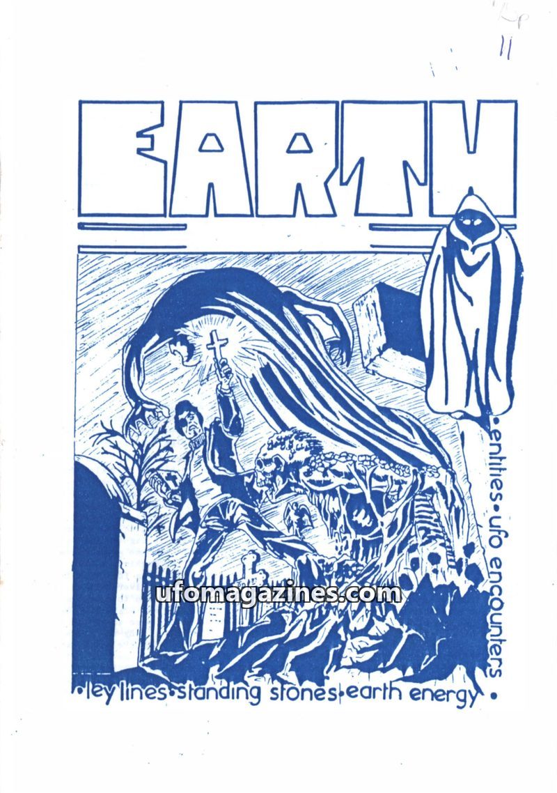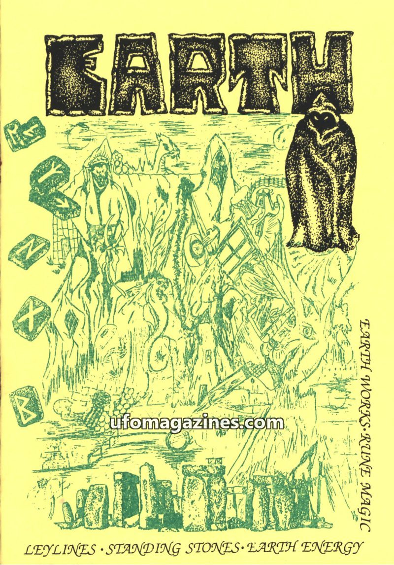 This issue of EARTH magazine delves into various esoteric topics. It reports on numerous UFO and entity sightings around Idle Hill in West Yorkshire during the 1970s and 1980s, cor