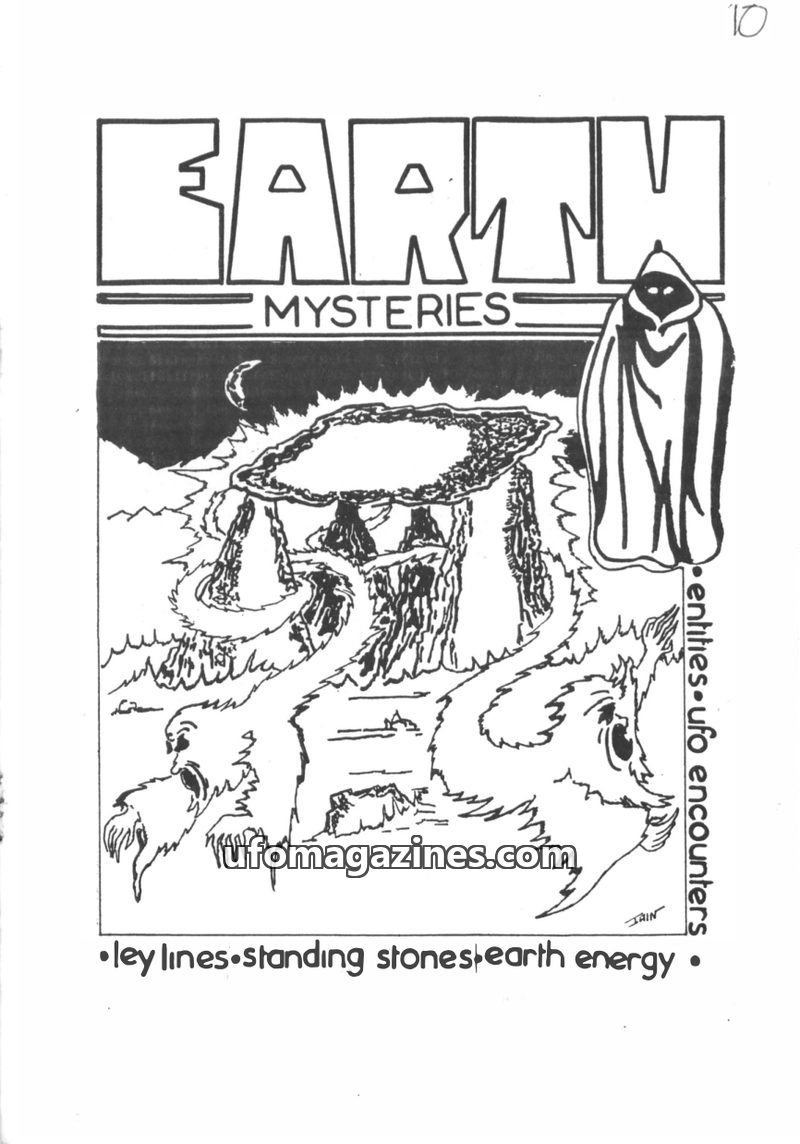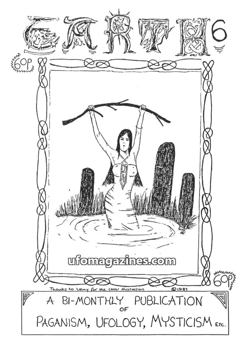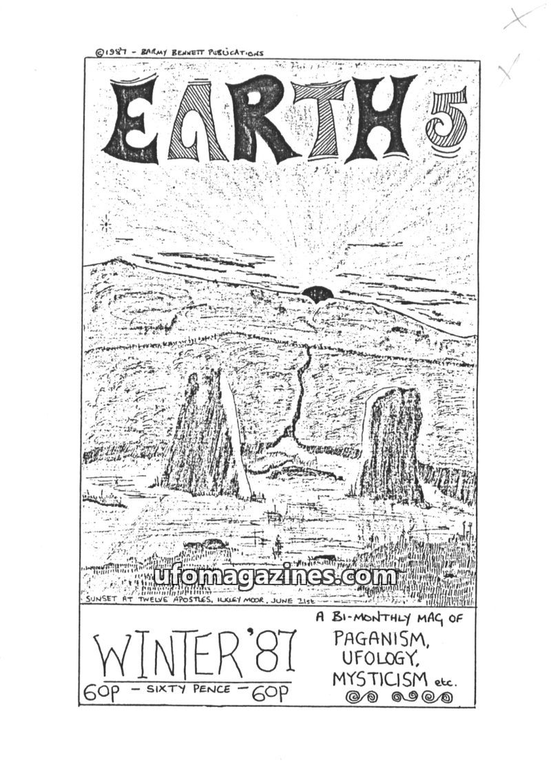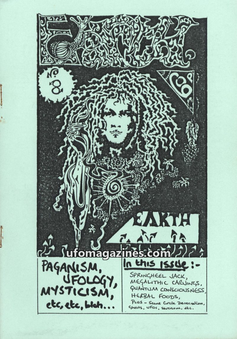 This issue of EARTH magazine delves into various esoteric topics. It reports on numerous UFO and entity sightings around Idle Hill in West Yorkshire during the 1970s and 1980s, cor