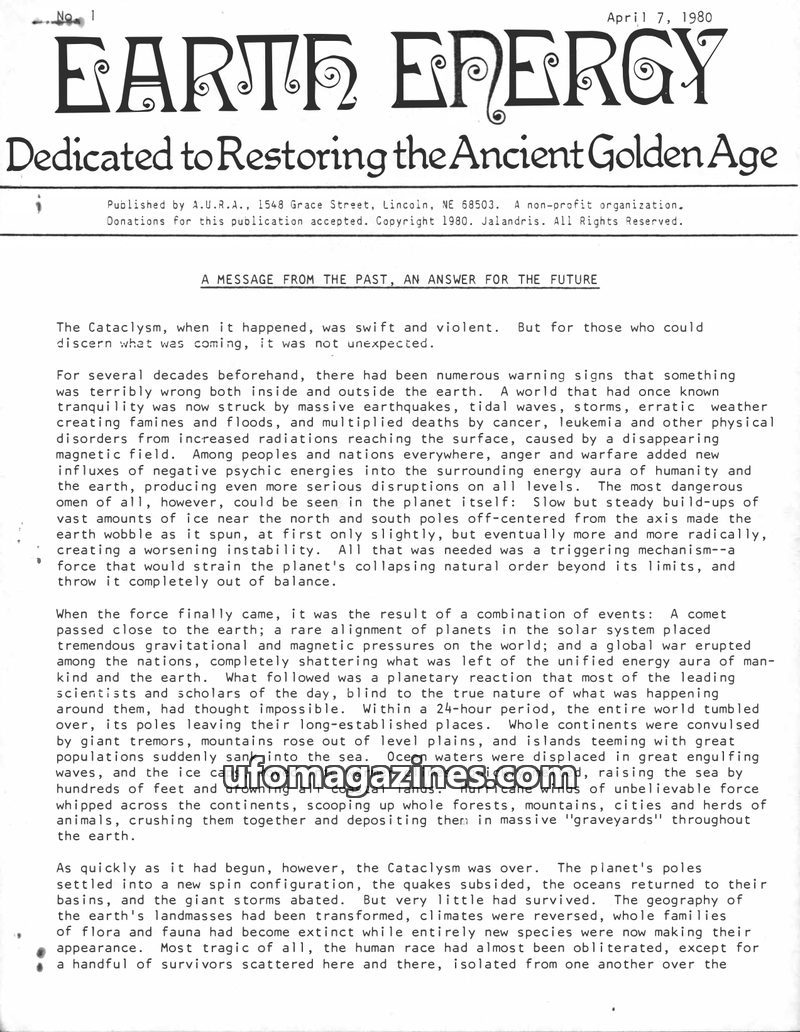 This inaugural issue of Earth Energy magazine posits that humanity is approaching another cataclysm, similar to one that occurred in the past, which transformed the planet and near
