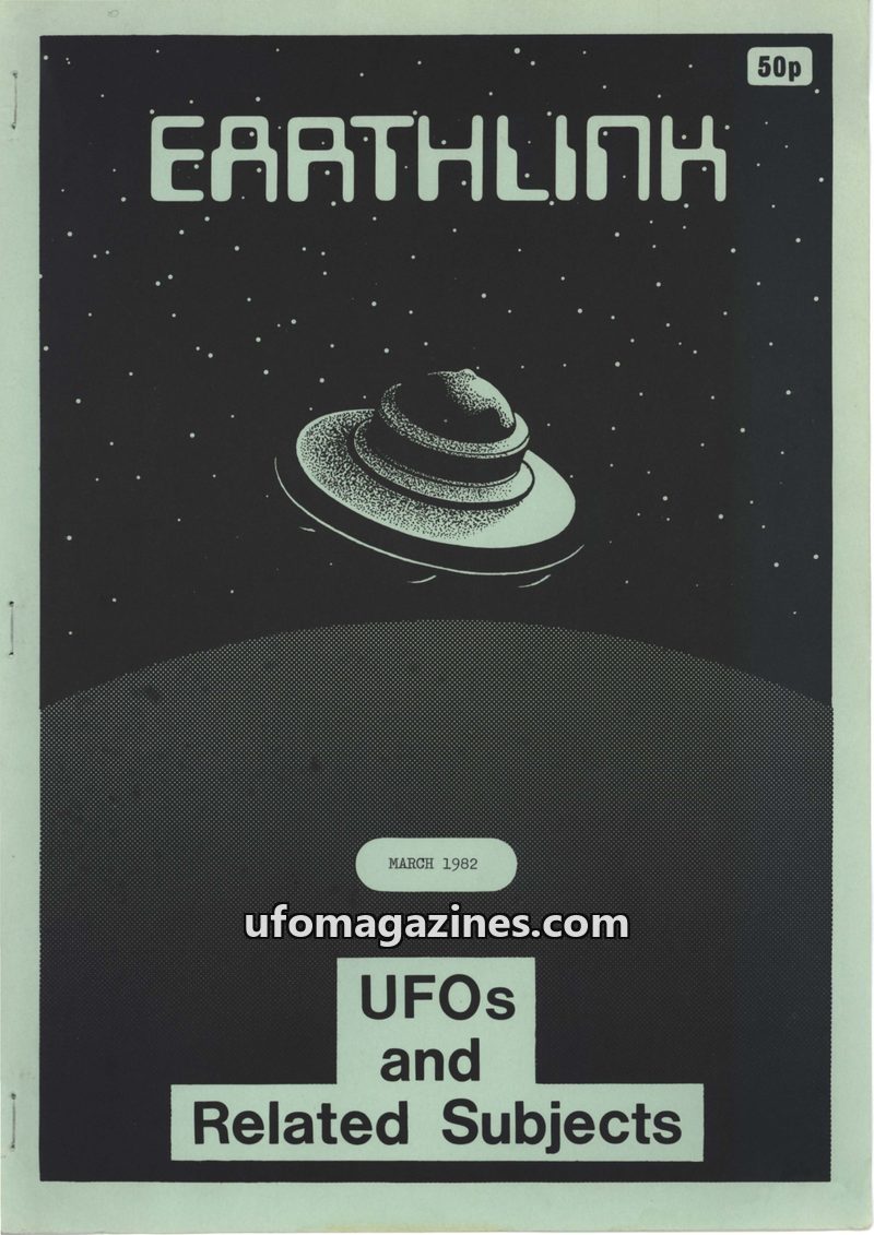 This issue of EARTHLINK magazine from March 1982 focuses on UFOs and related subjects. It includes an editorial discussing a hostile reaction to ufologist Gordon Creighton on a TV