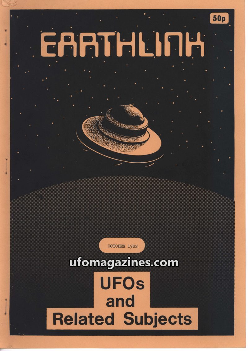 This issue of Earthlink magazine, dated October 1982, focuses on UFO crash incidents and related subjects. It details numerous alleged crashed UFO events from various countries inc