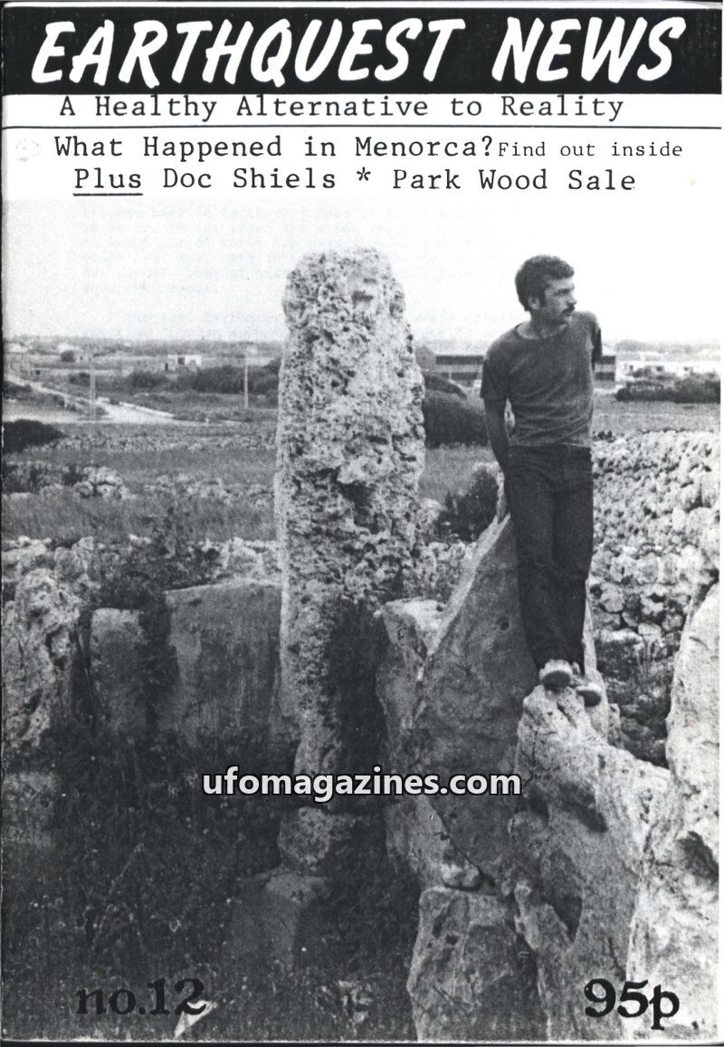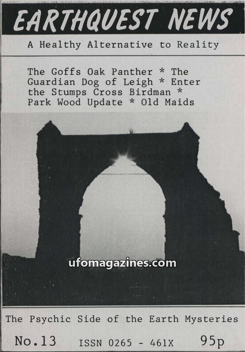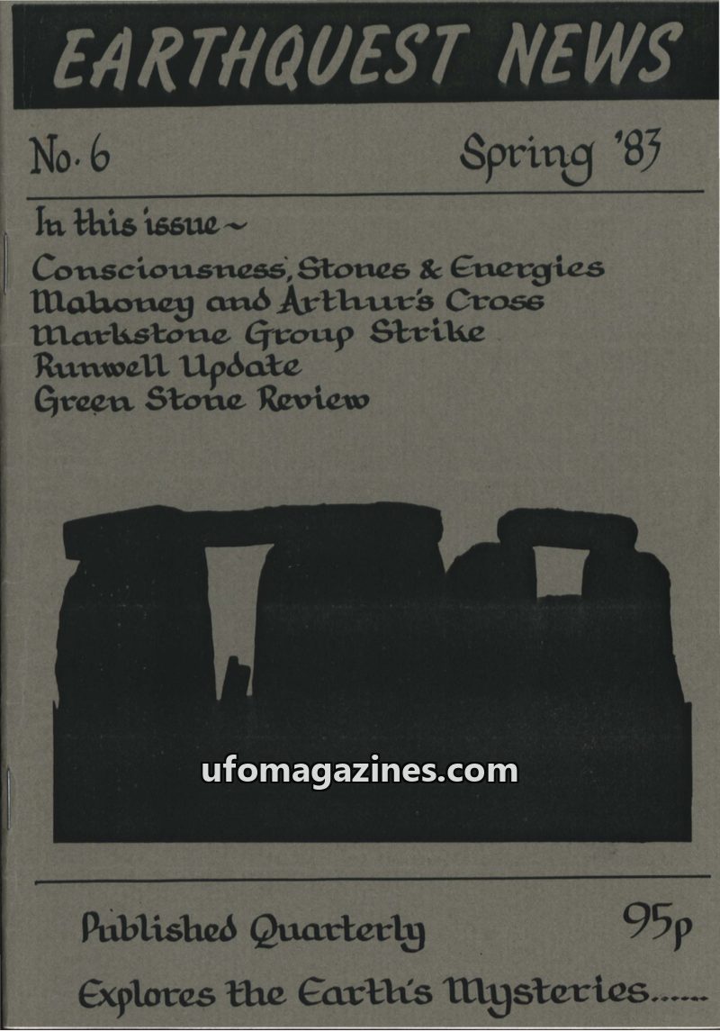 This issue of Earthquest News explores Earth Mysteries, geomancy, and the paranormal. It features an experiment at the Nine Ladies stone circle involving consciousness and earth en