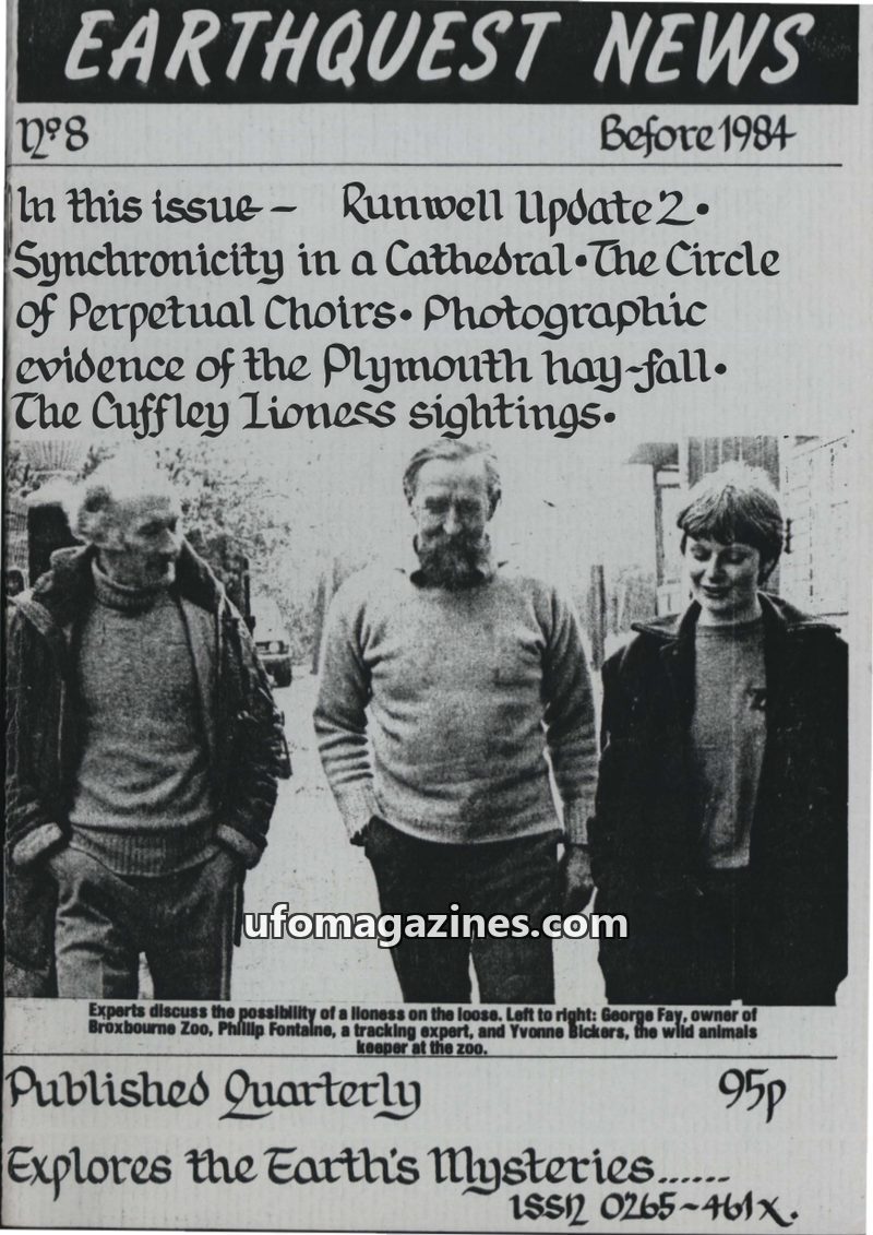 This issue of Earthquest News investigates the Cuffley Lioness sighting, presenting a detailed case report and analysis that concludes it was likely a lioness despite police explan