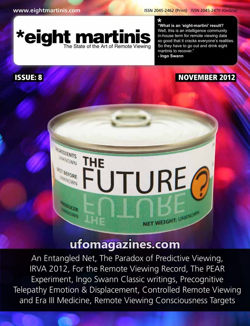 This issue of eight martinis delves into remote viewing applications, featuring an in-depth look at Hitomi Akamatsu's session on the Higgs-Boson particle at CERN. It also explores
