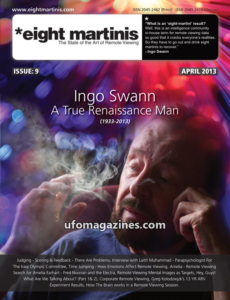 This issue of Eight Martinis magazine is dedicated to Ingo Swann, a pivotal figure in the field of Remote Viewing. It details his life, from his early precociousness and artistic p