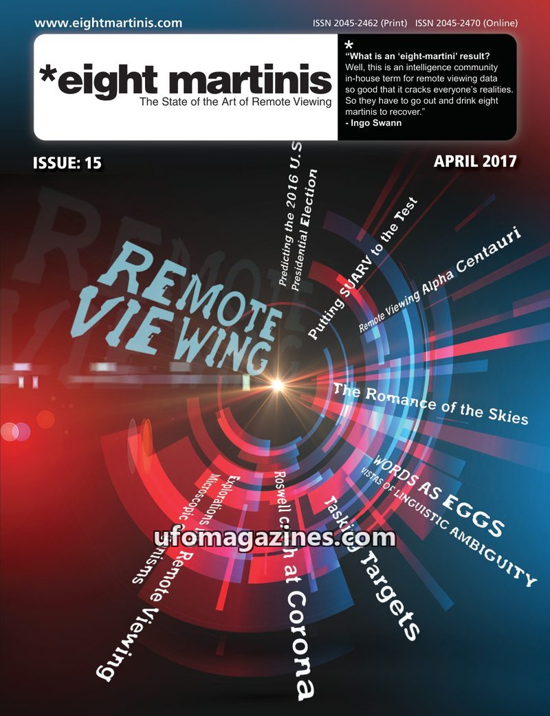 This issue of *eight martinis (April 2017) focuses on remote viewing, particularly its application in predicting the 2016 U.S. Presidential Election using an Associative Remote Vie