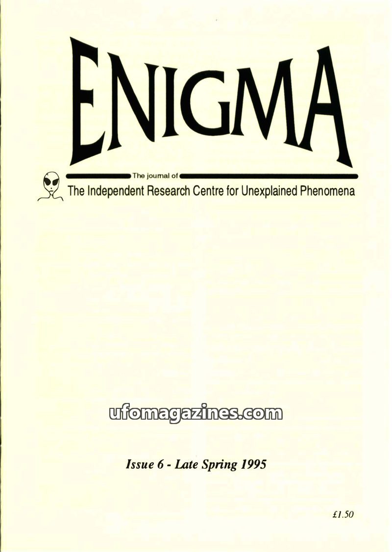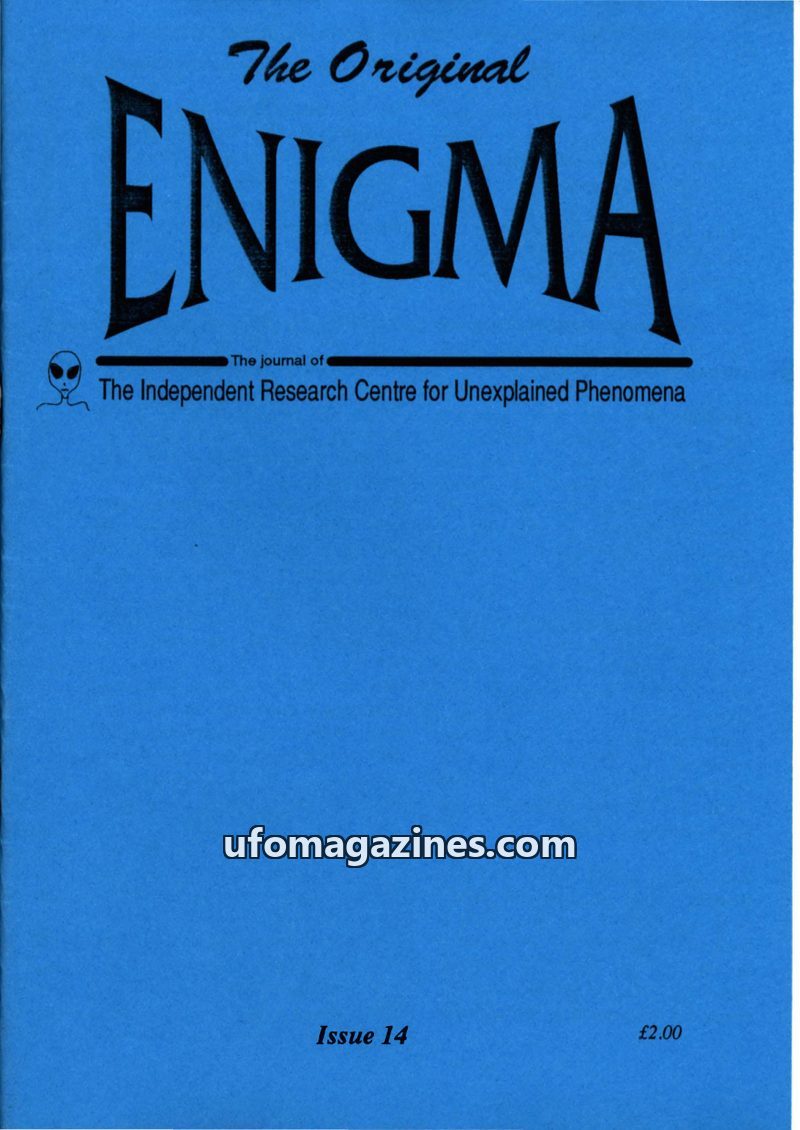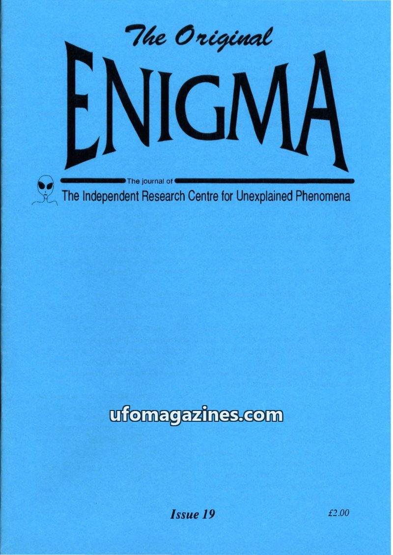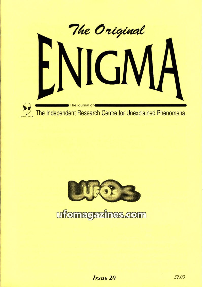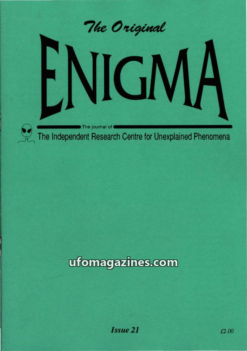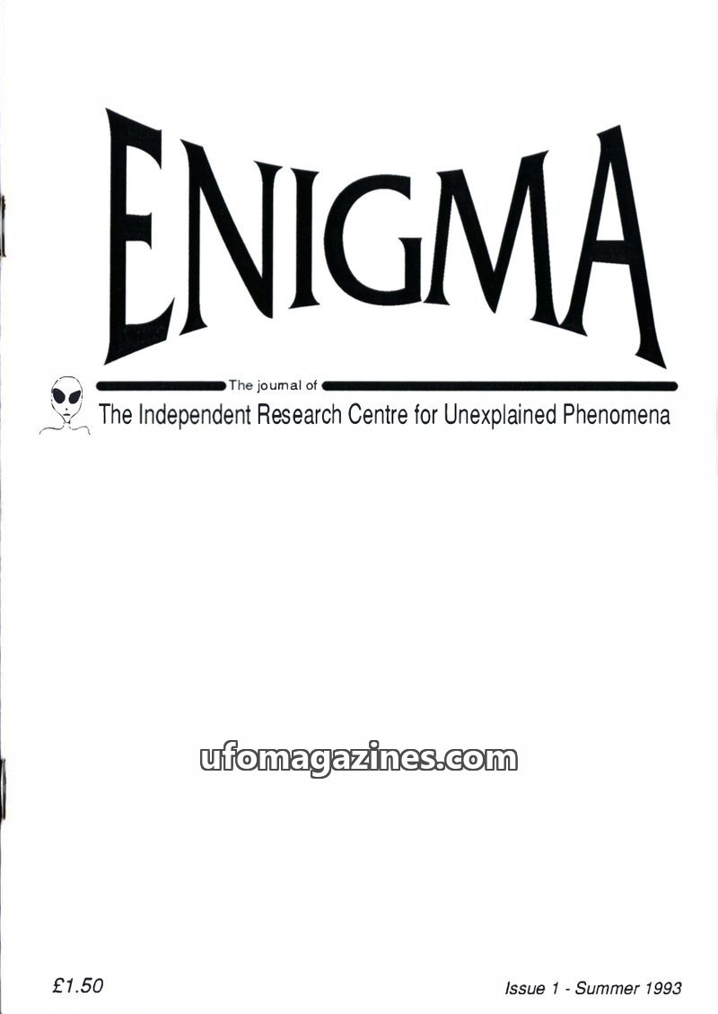 The inaugural issue of Enigma magazine, published by The Independent Research Centre for Unexplained Phenomena (I.R.C.U.P.), focuses on a variety of paranormal and unexplained topi
