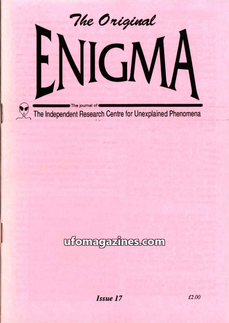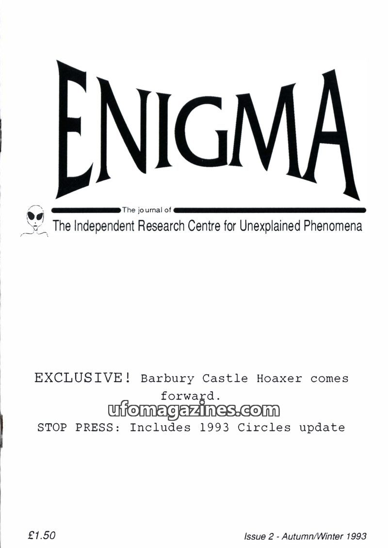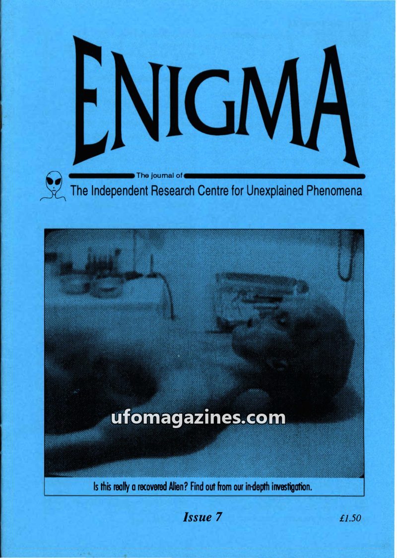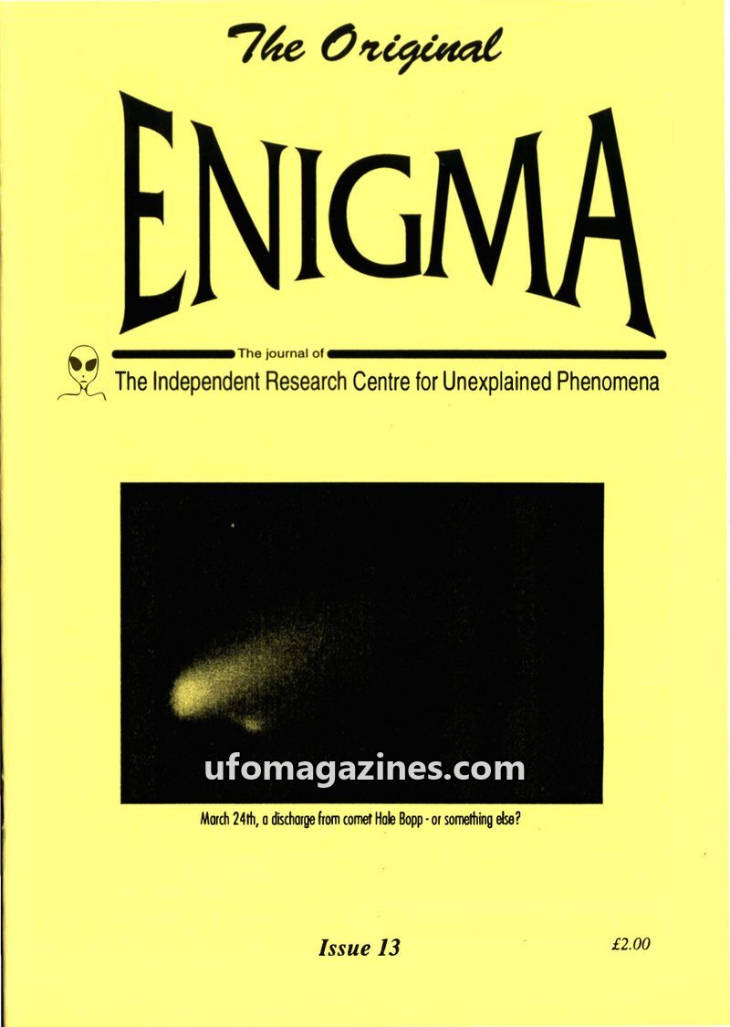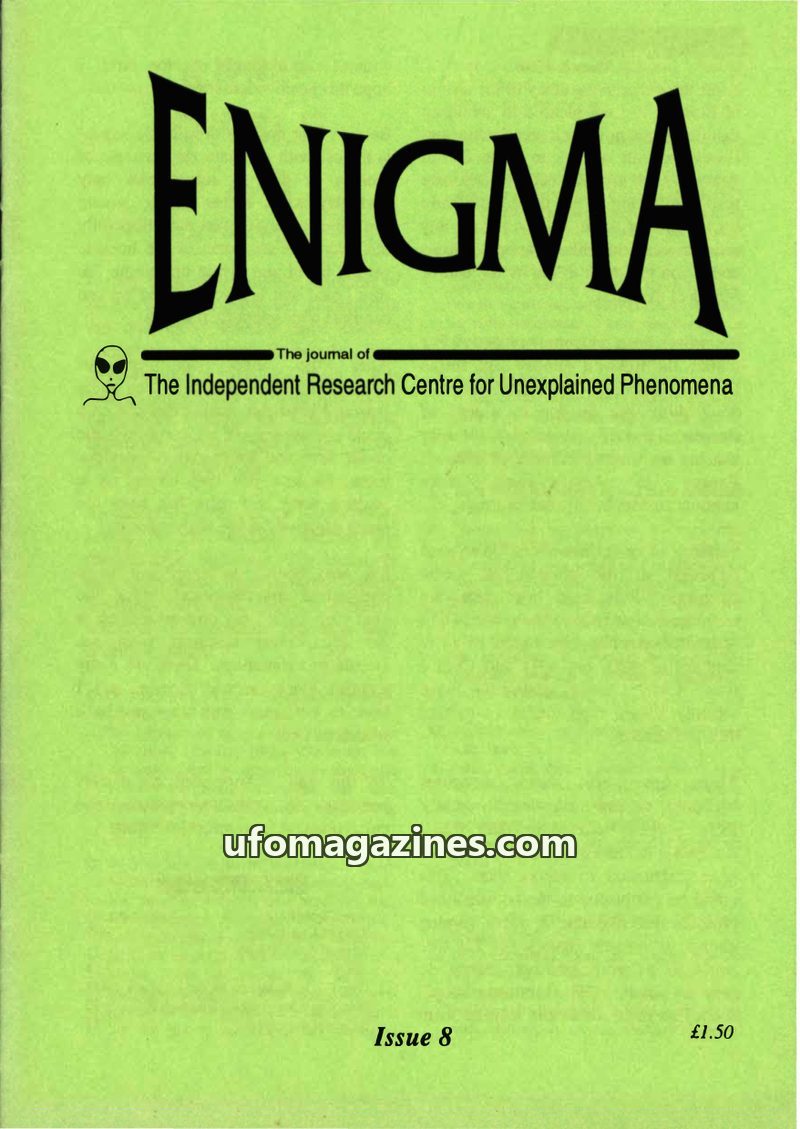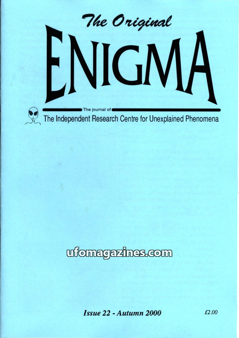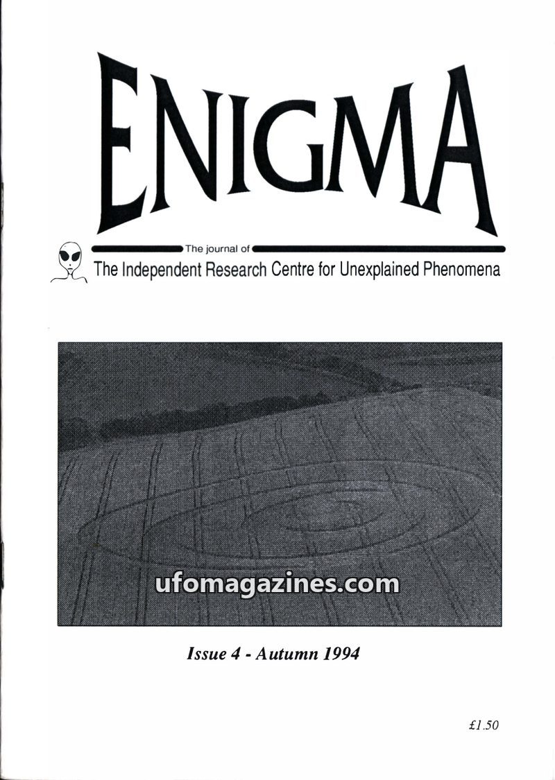 The inaugural issue of Enigma magazine, published by The Independent Research Centre for Unexplained Phenomena (I.R.C.U.P.), focuses on a variety of paranormal and unexplained topi