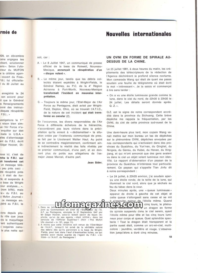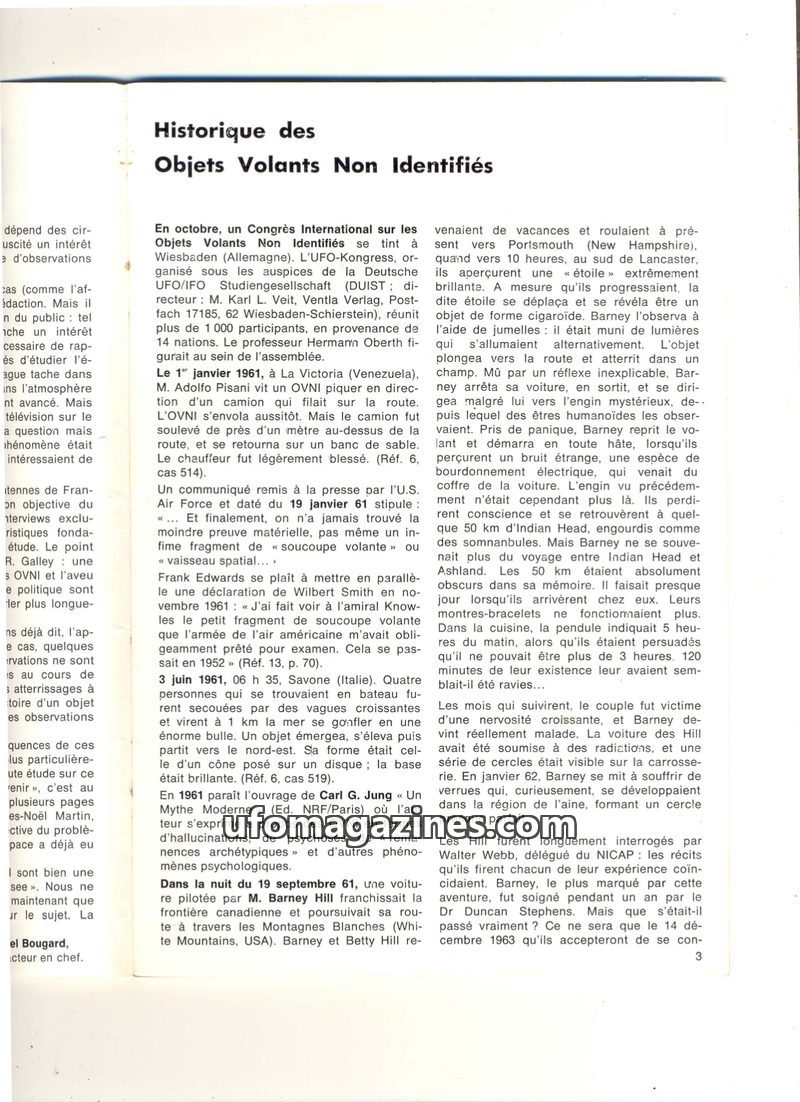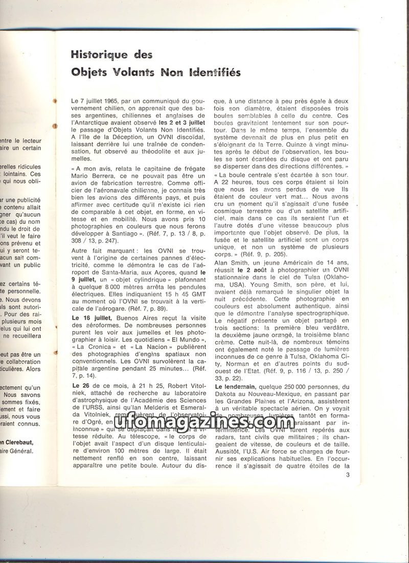 This issue details historical UFO sightings and investigations from the 1960s and 1970s. It covers incidents in Vietnam, the Andes, Washington, Argentina, France, Peru, Sweden, Can