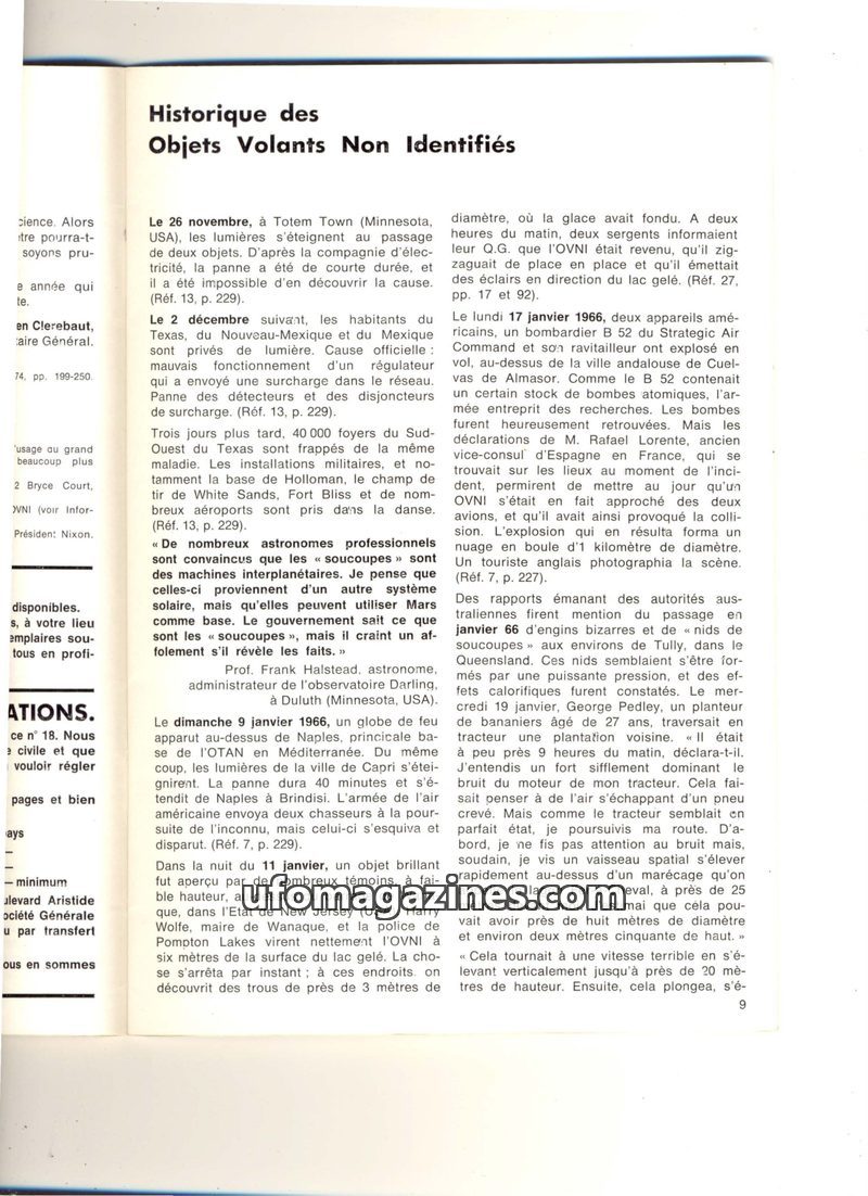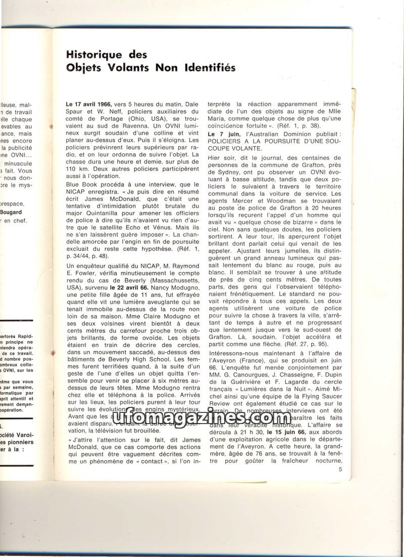 This issue delves into the history of UFO sightings, presenting several detailed cases from 1966. It highlights incidents involving police officers, civilians, and even astronauts,