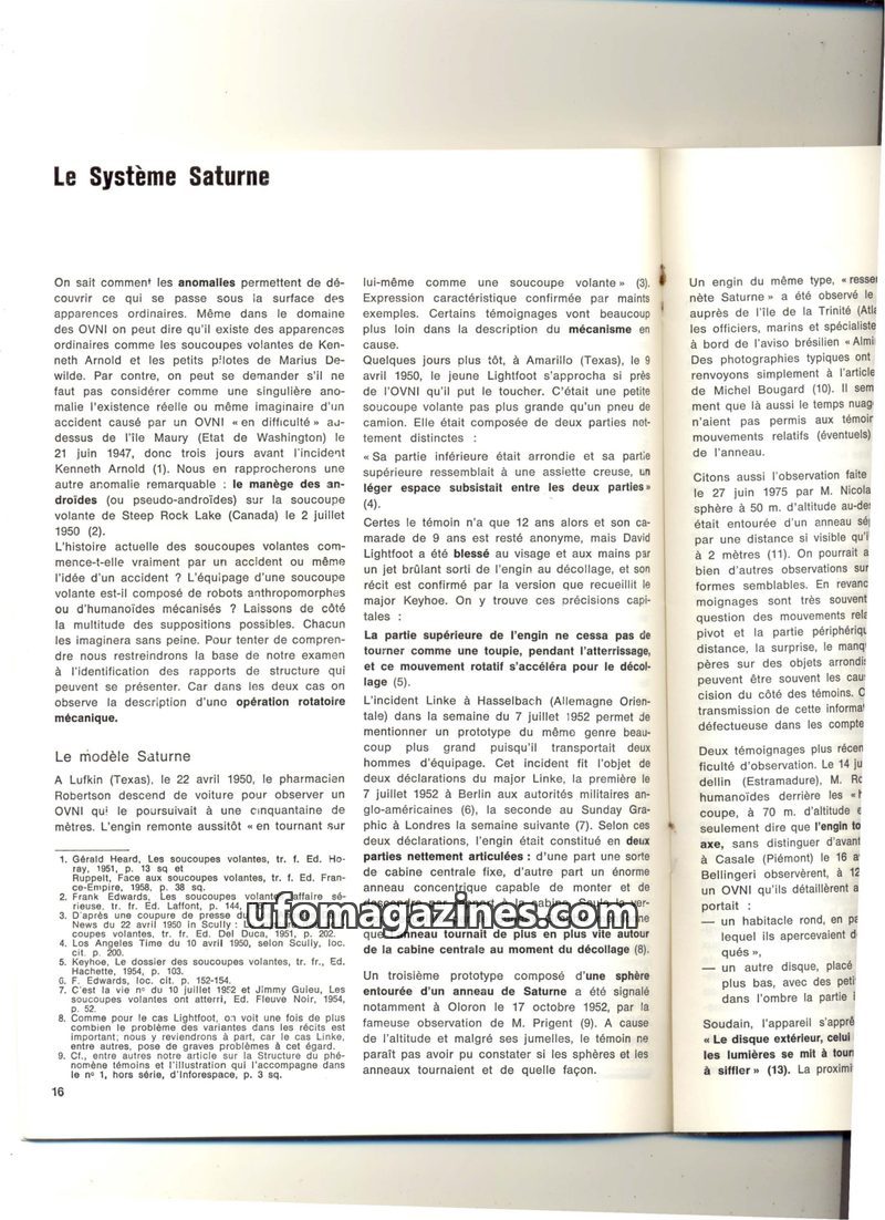 This issue of 'Le Système Saturne' delves into UFO phenomena, proposing a 'Saturn model' characterized by a combination of fixed and rotating elements in observed craft. It examine