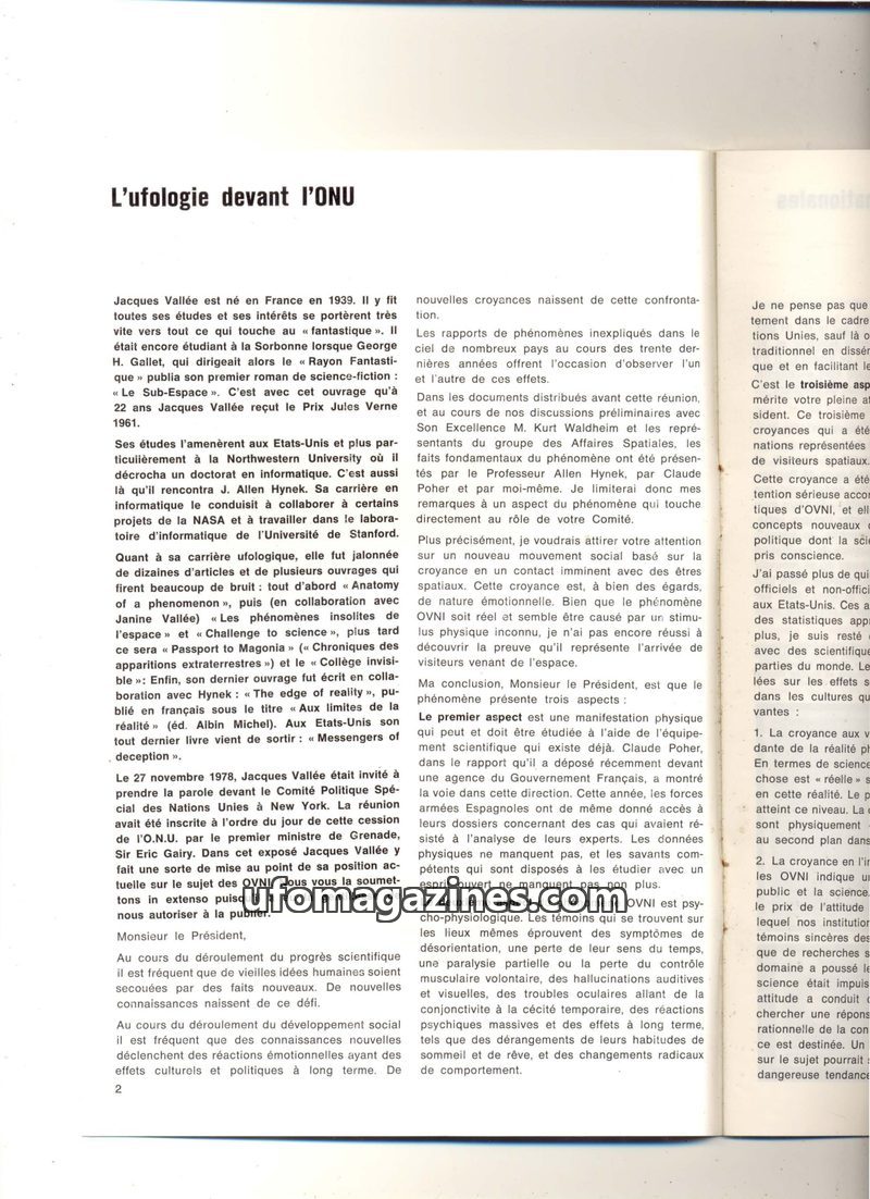 This issue of Inforespace features Jacques Vallée's address to the UN on the multifaceted nature of UFO phenomena. It also delves into historical UFO sightings from 1883, including