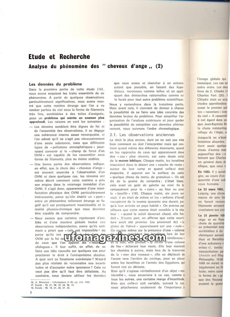This issue delves into the 'angel hair' phenomenon, a strange filamentous substance occasionally falling from the sky, often associated with UFO sightings. Scientific analyses have