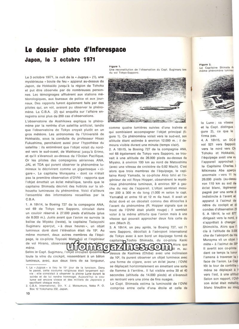 On October 3, 1971, numerous UFO sightings were reported across Japan, primarily by airline pilots. Multiple witnesses described luminous, cigar-shaped objects with trails, observe