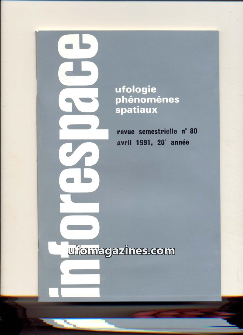 This issue of Inforespace, number 79 from November 1990, focuses on ufology and spatial phenomena, particularly a wave of sightings in Belgium during 1989-1990. It details several