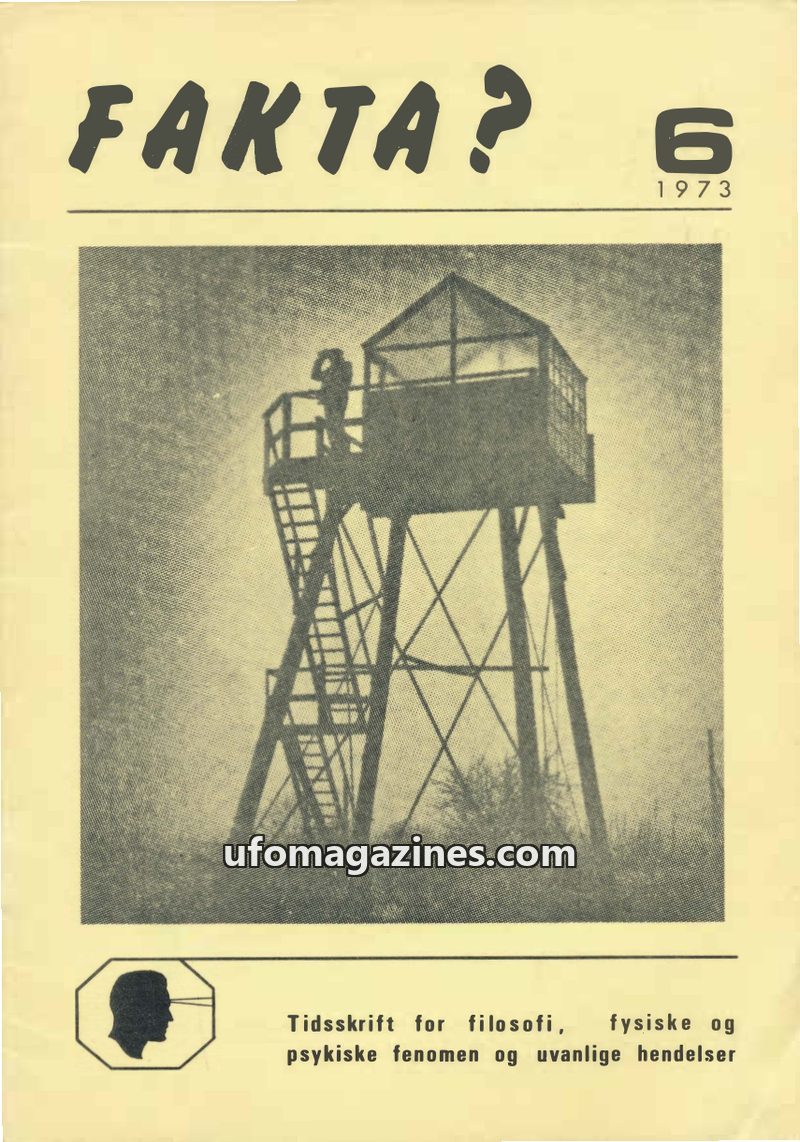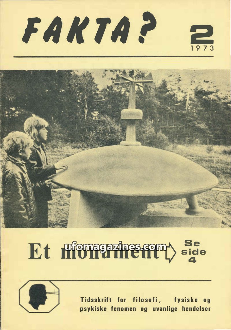This issue of FAKTA? magazine from 1973 delves into UFO phenomena and related topics. It features an article about a flying saucer monument in Sweden, commemorating a 1946 sighting