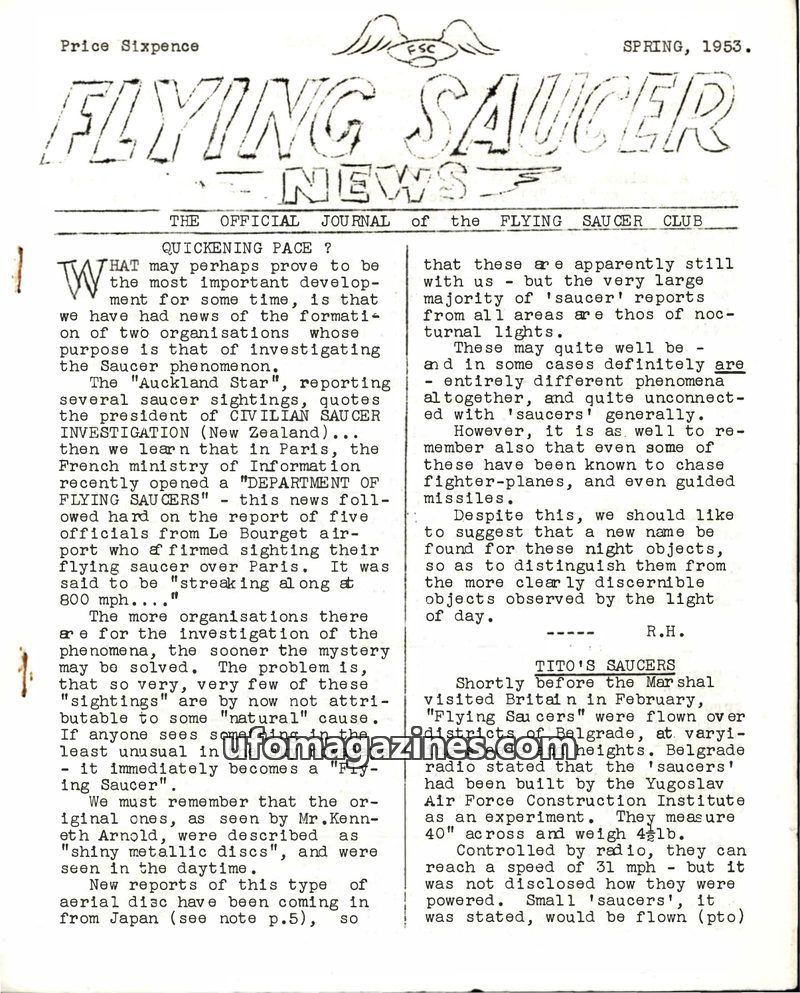Flying Saucer News - No 01 - 1953 Spring