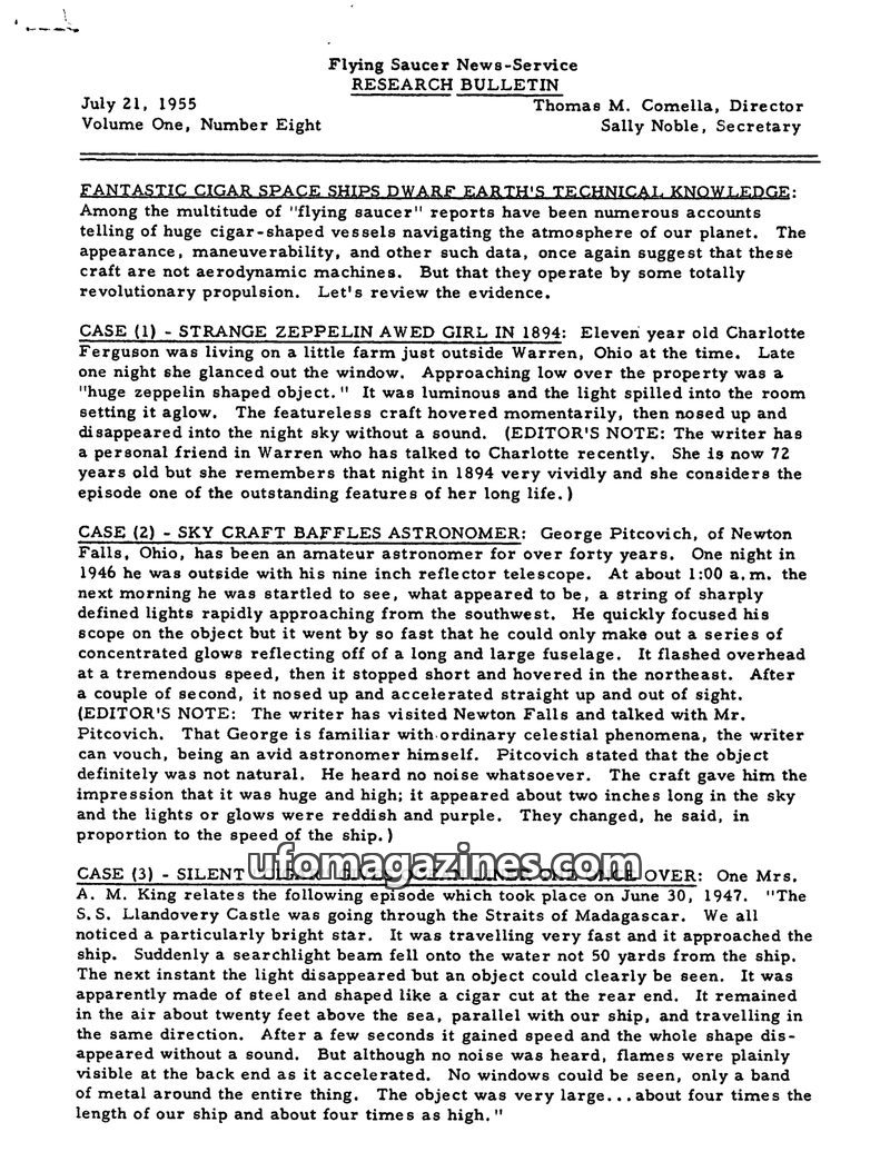 Flying Saucer News-Service Research Bulletin (Comella v1 n08 1955 July