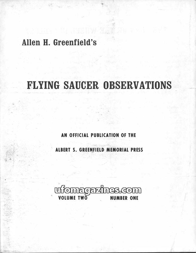 This issue of Flying Saucer Observations, published by Albert S. Greenfield Memorial Press, reflects on the shifting landscape of ufology in the early 1970s. It notes the decline o