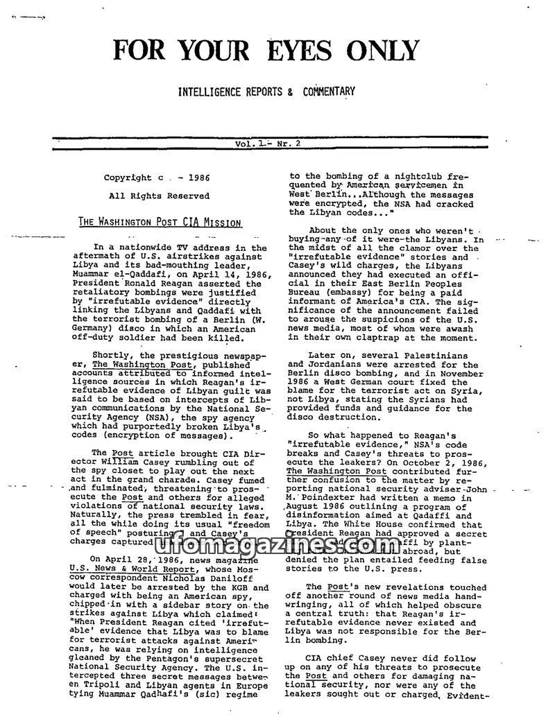 This issue critically examines the U.S. government's narrative following the 1986 Berlin disco bombing, suggesting that the 'irrefutable evidence' linking Libya was disinformation