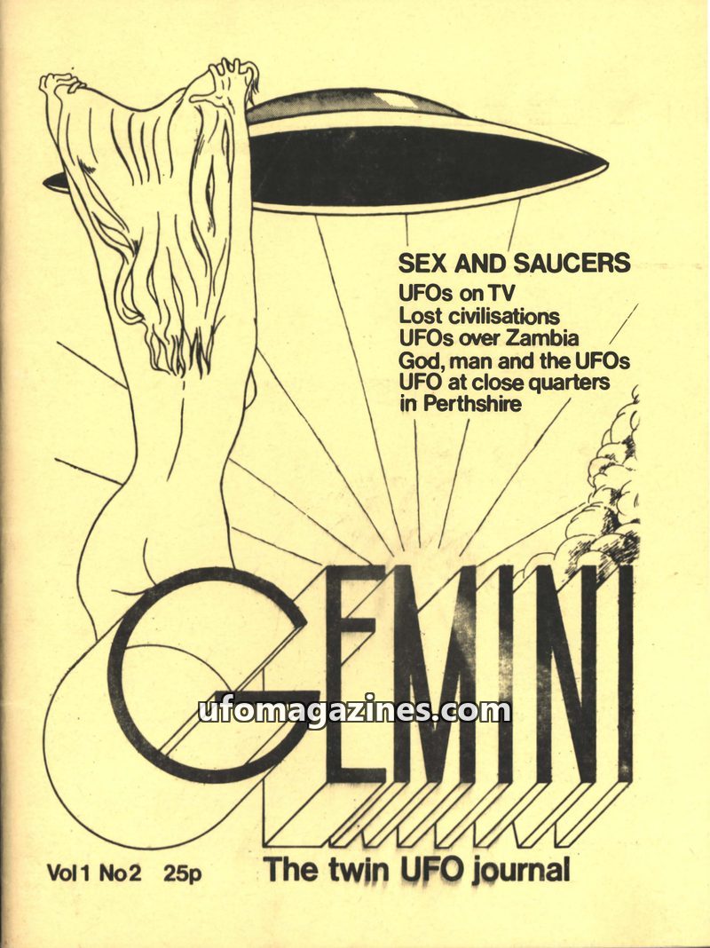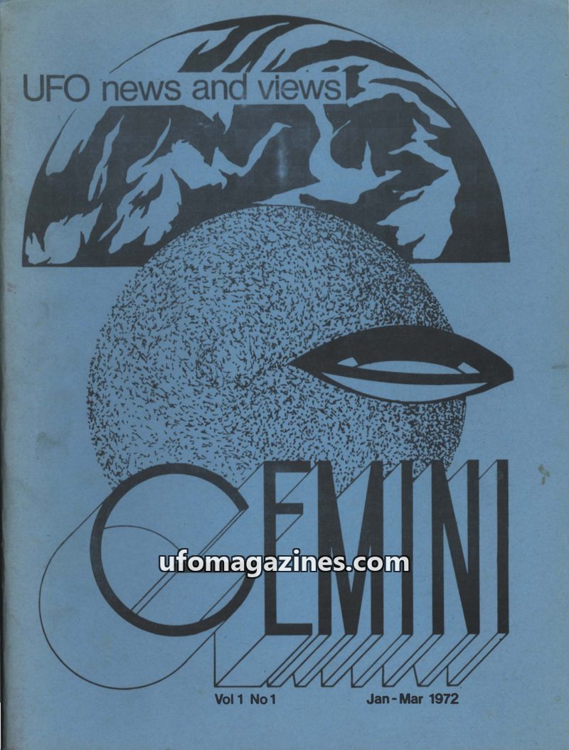 This issue of GEMINI, 'The twin UFO journal', covers a range of UFO-related topics including a review of a BBC documentary on Fortean phenomena, numerous 'FLAP 71' sighting reports