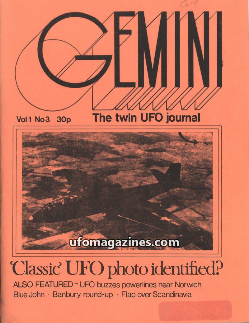 This issue of GEMINI, 'The twin UFO journal', focuses on the identification of a 'classic' UFO photo and features several detailed reports of sightings. A significant investigation