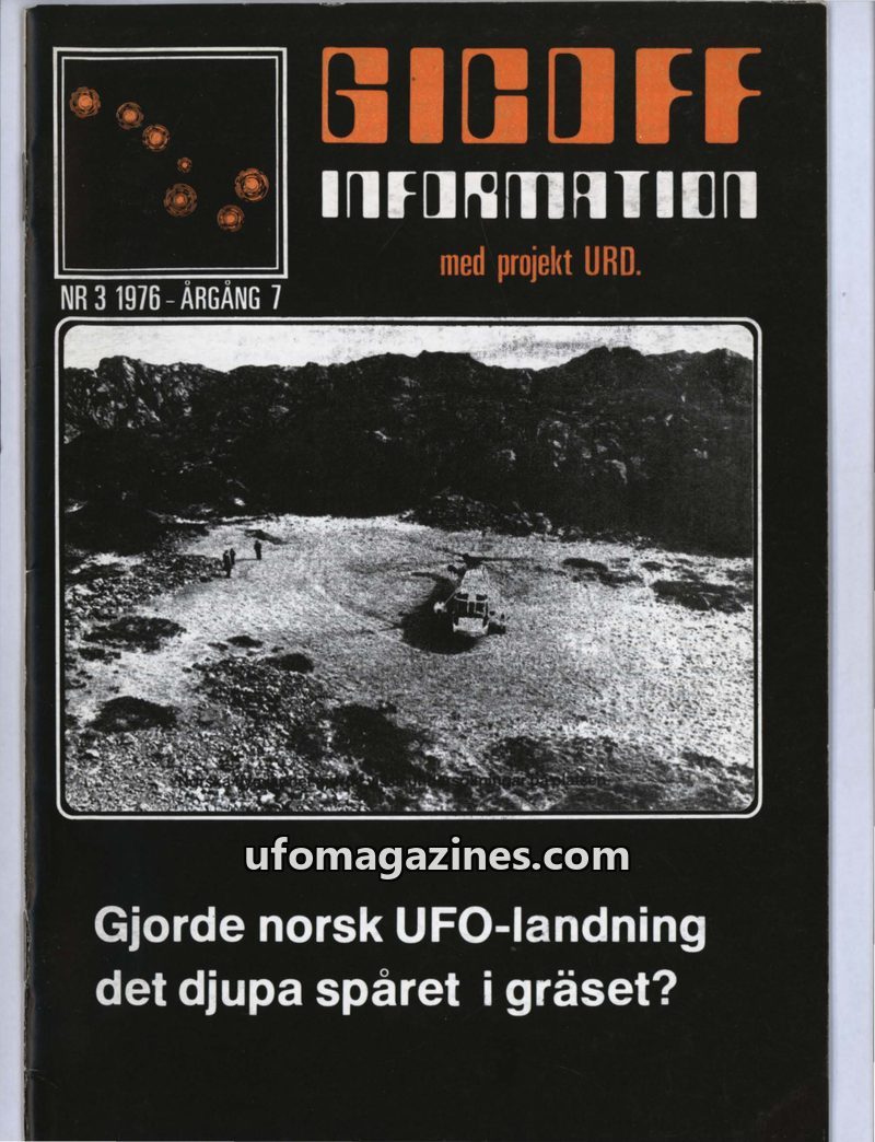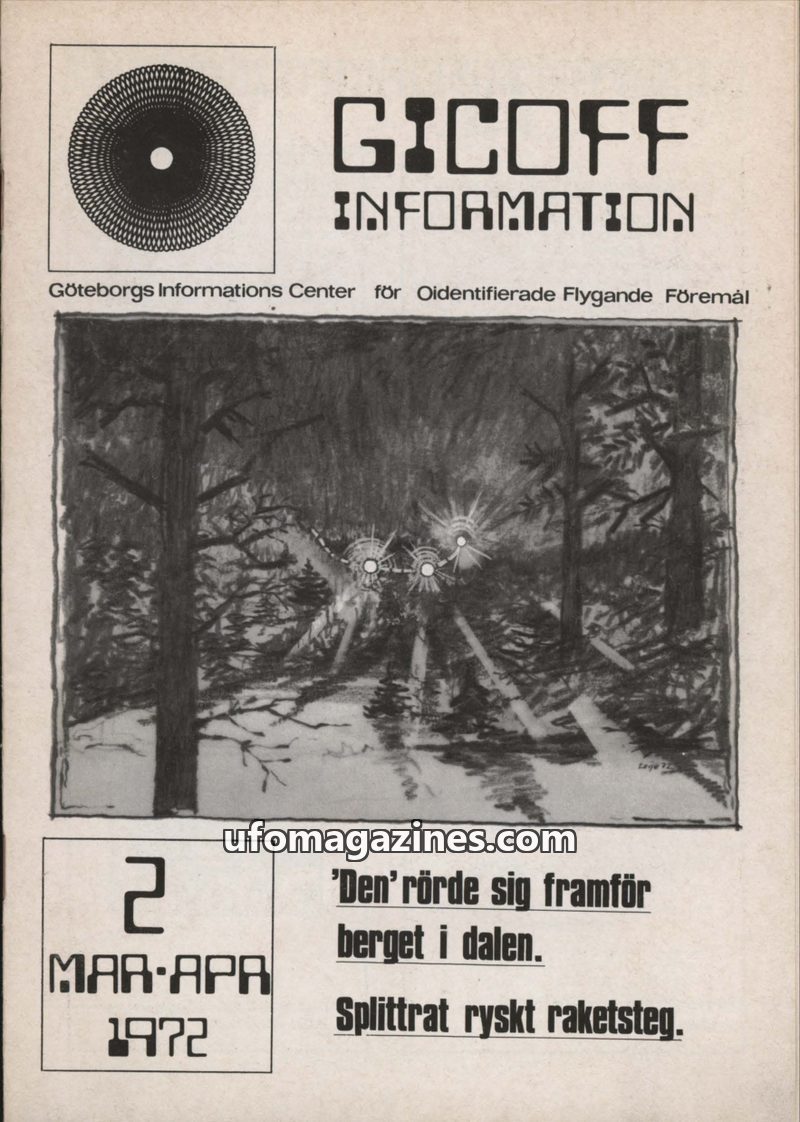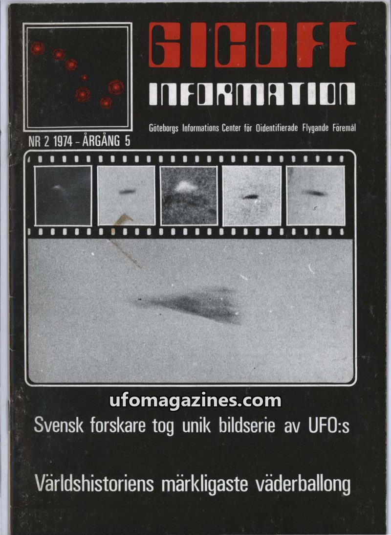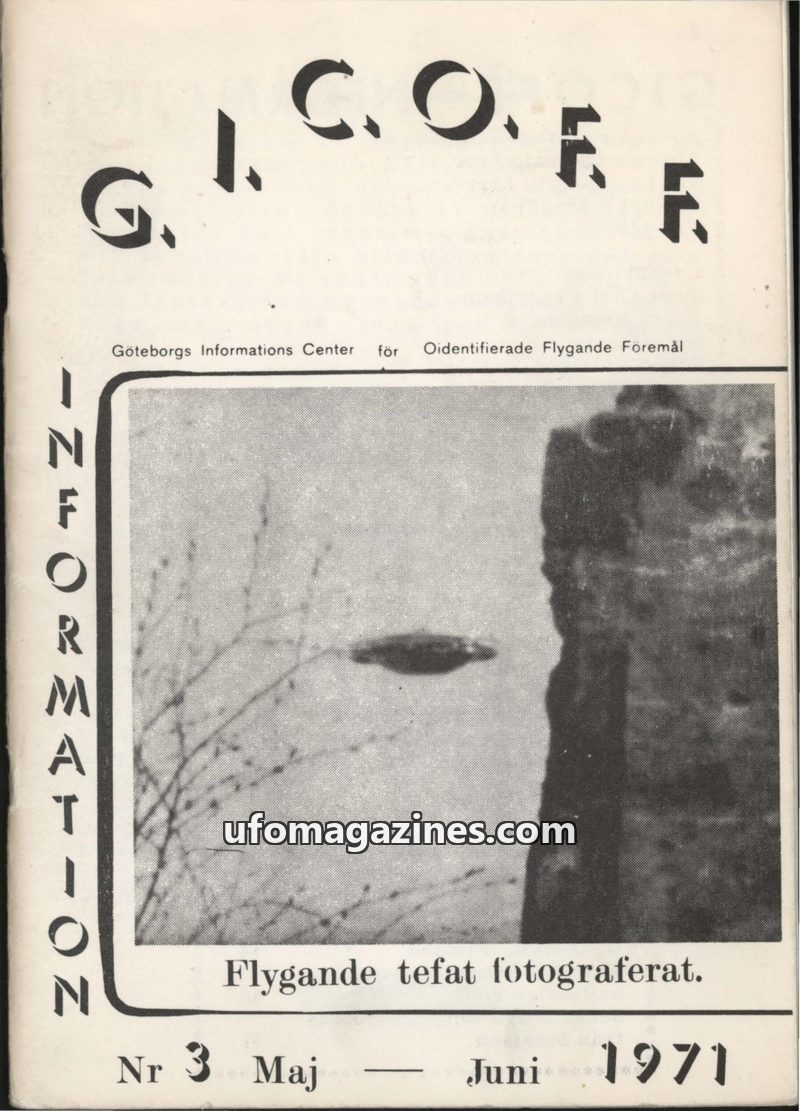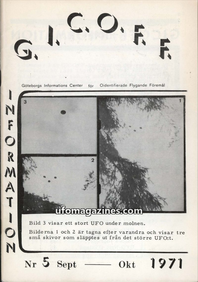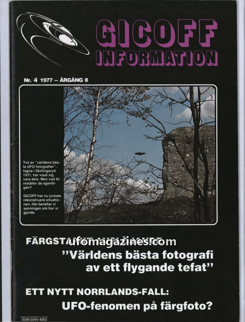 This issue of GICOFF INFORMATION focuses on a detailed investigation into the renowned Skillingaryd UFO photographs taken in 1971. The magazine presents evidence that the photograp