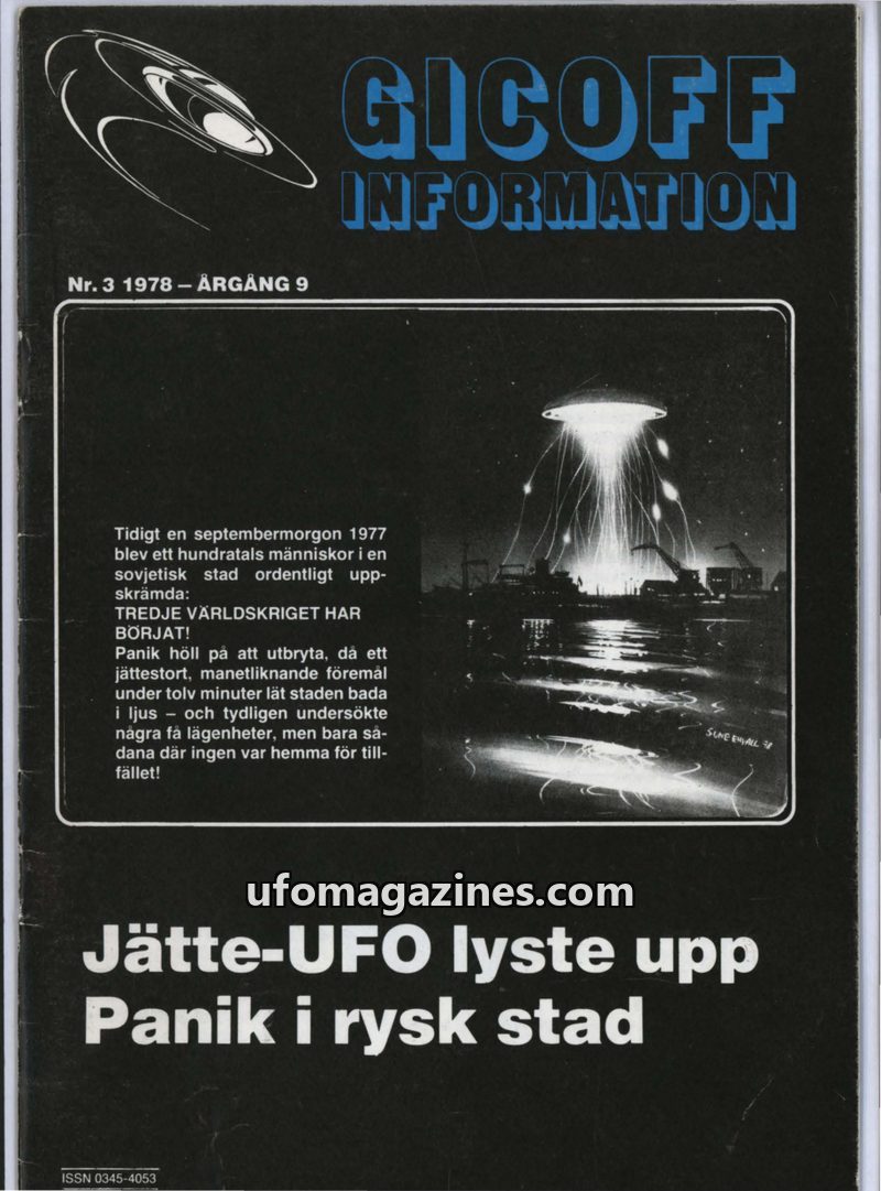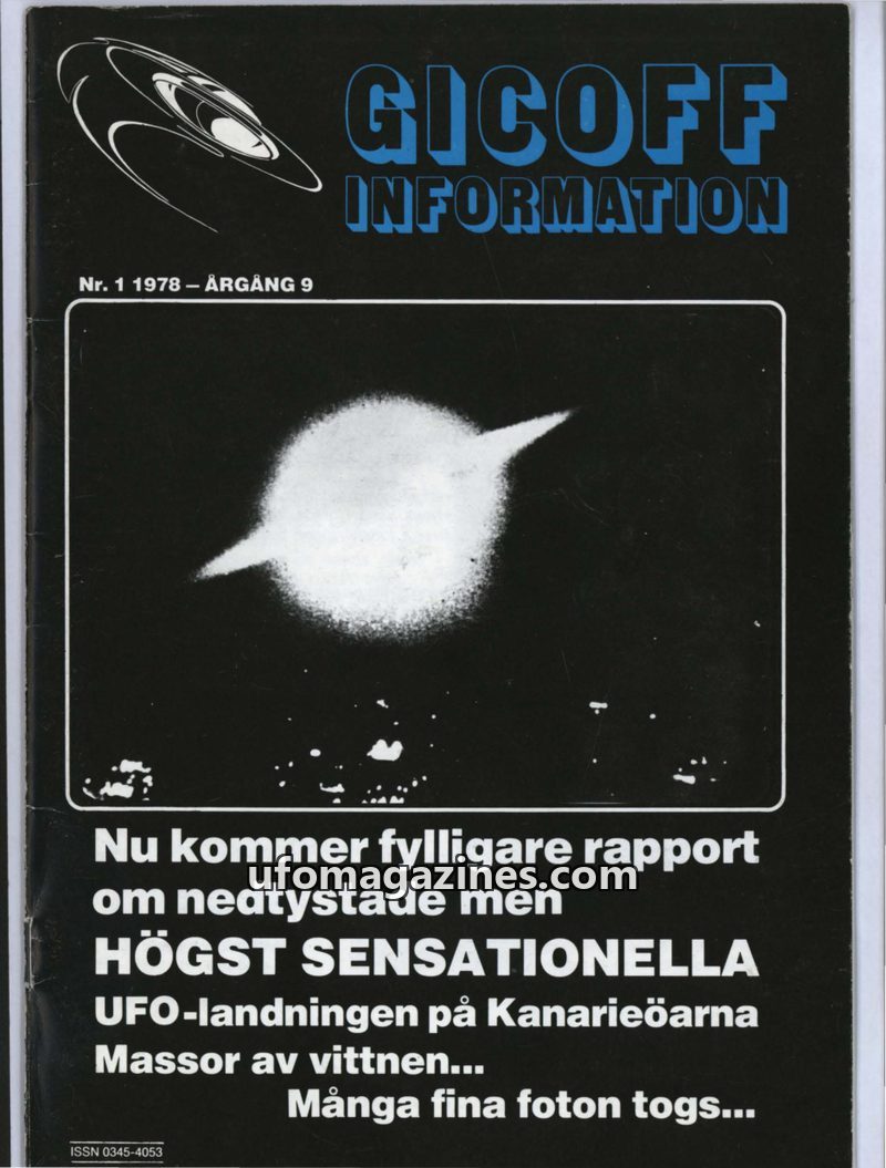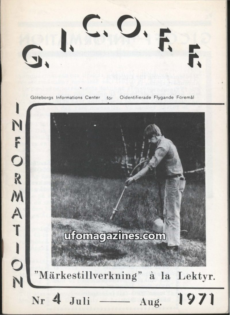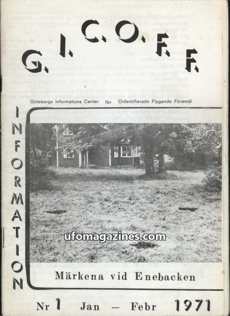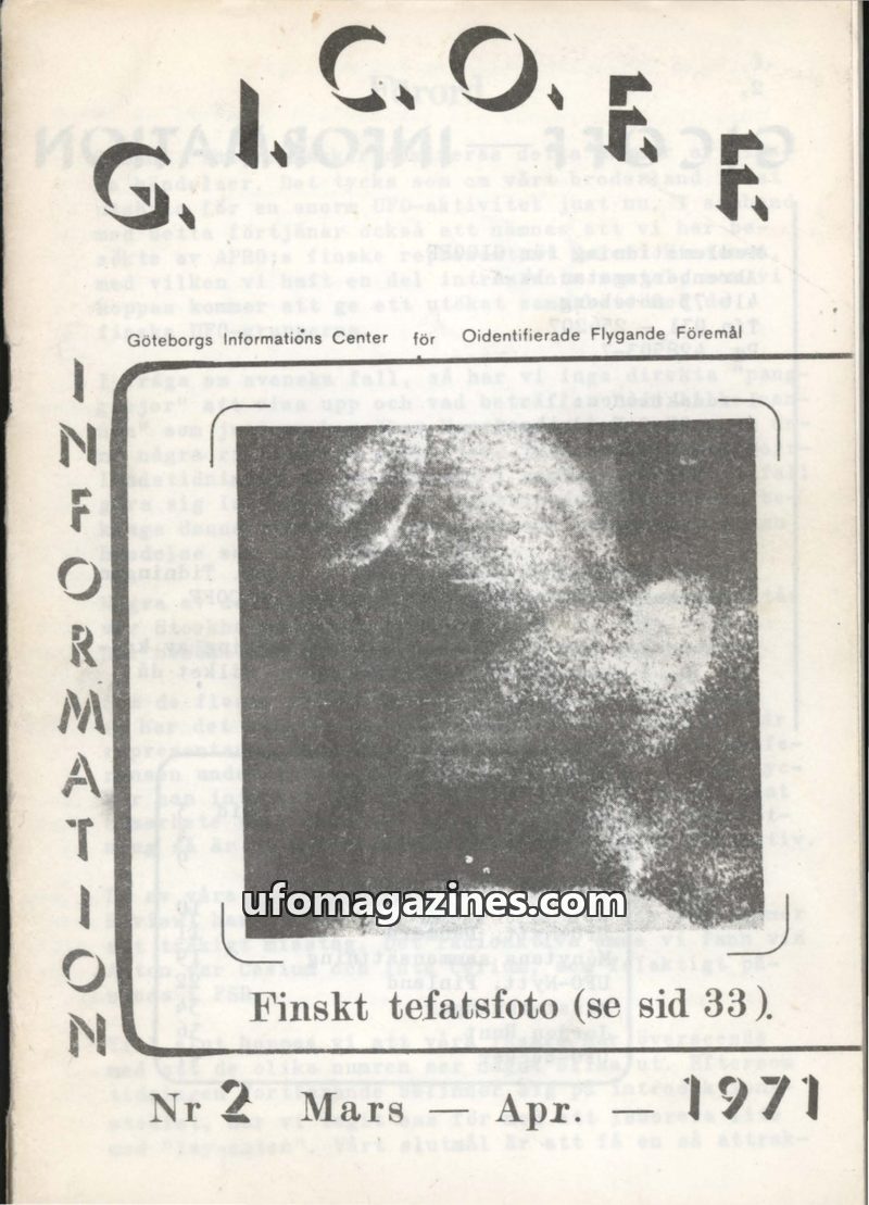 This issue of GICOFF INFORMATION focuses on a detailed investigation into the renowned Skillingaryd UFO photographs taken in 1971. The magazine presents evidence that the photograp