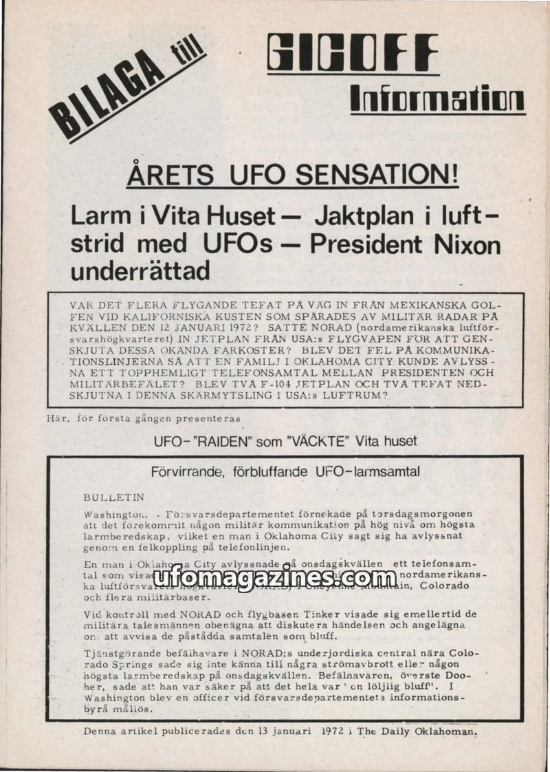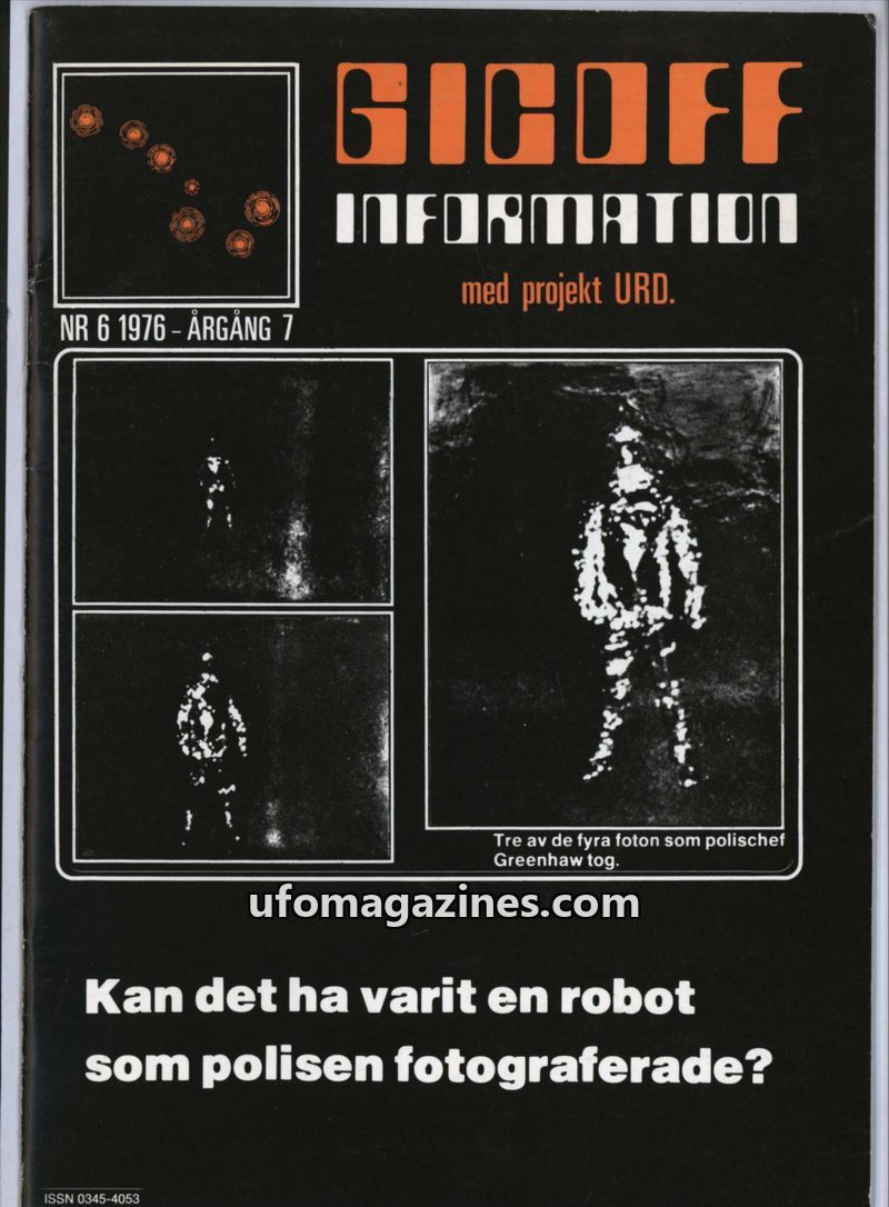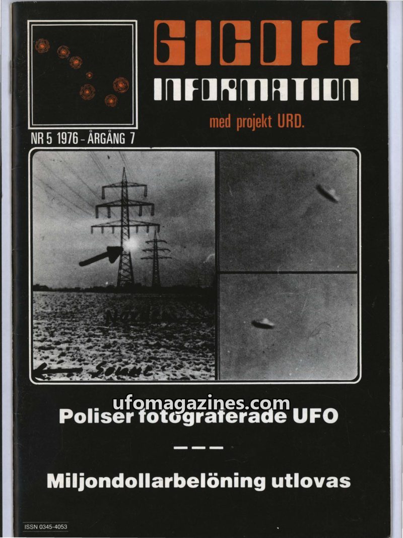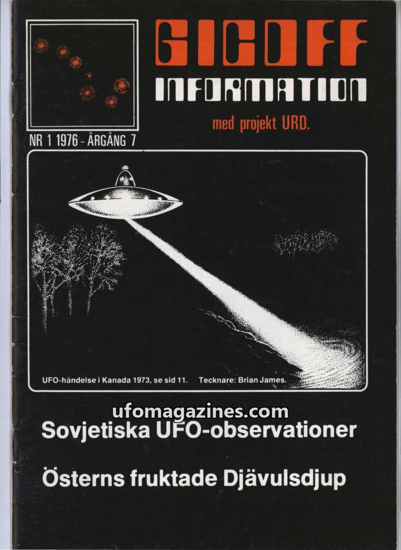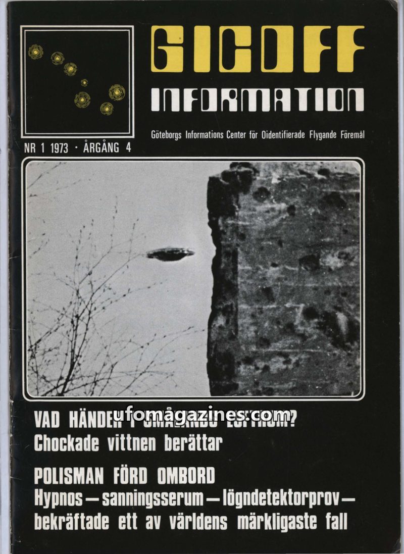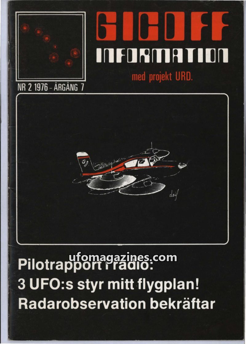 This issue of GICOFF INFORMATION focuses on a detailed investigation into the renowned Skillingaryd UFO photographs taken in 1971. The magazine presents evidence that the photograp