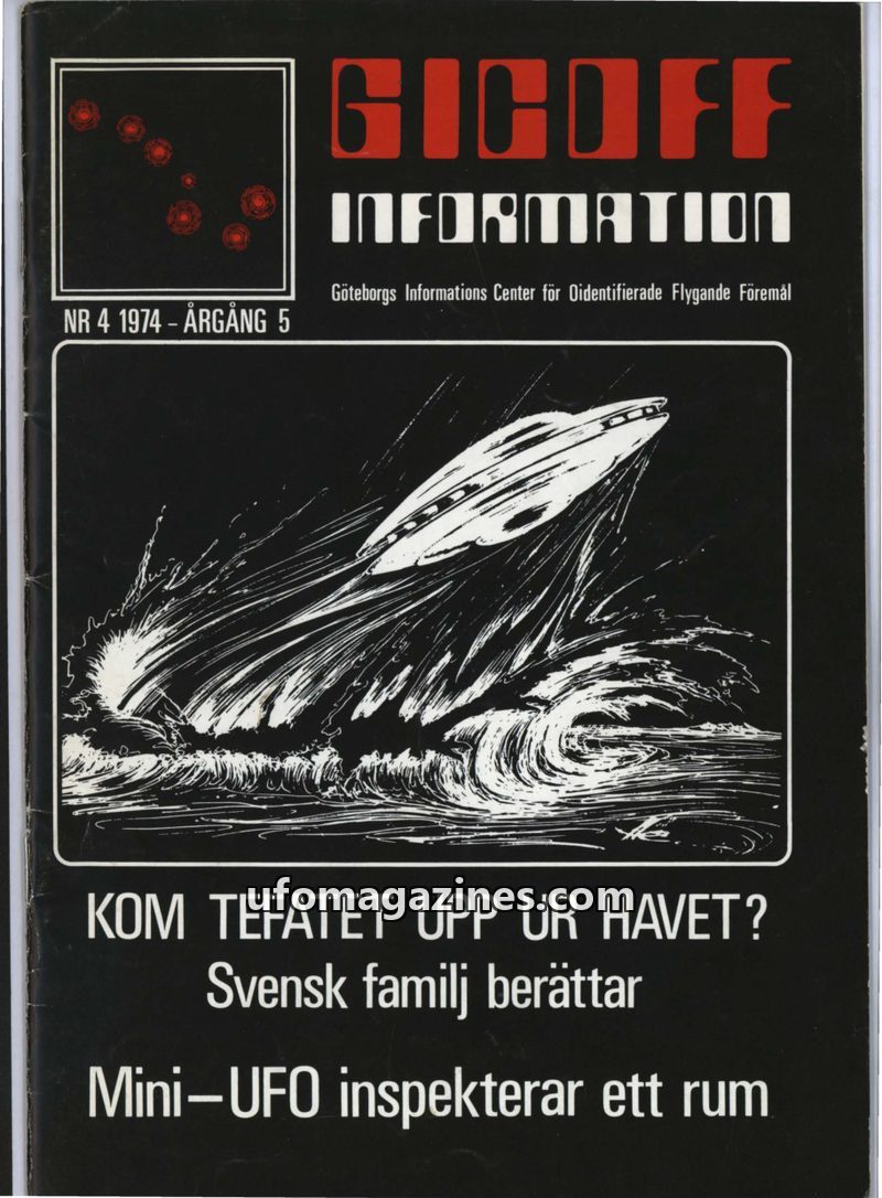 This issue of GICOFF INFORMATION from 1974 highlights a unique UFO photo series taken by Swedish researcher Åke Lejon in Pänttäjä, Övertorneå. The magazine also discusses the case