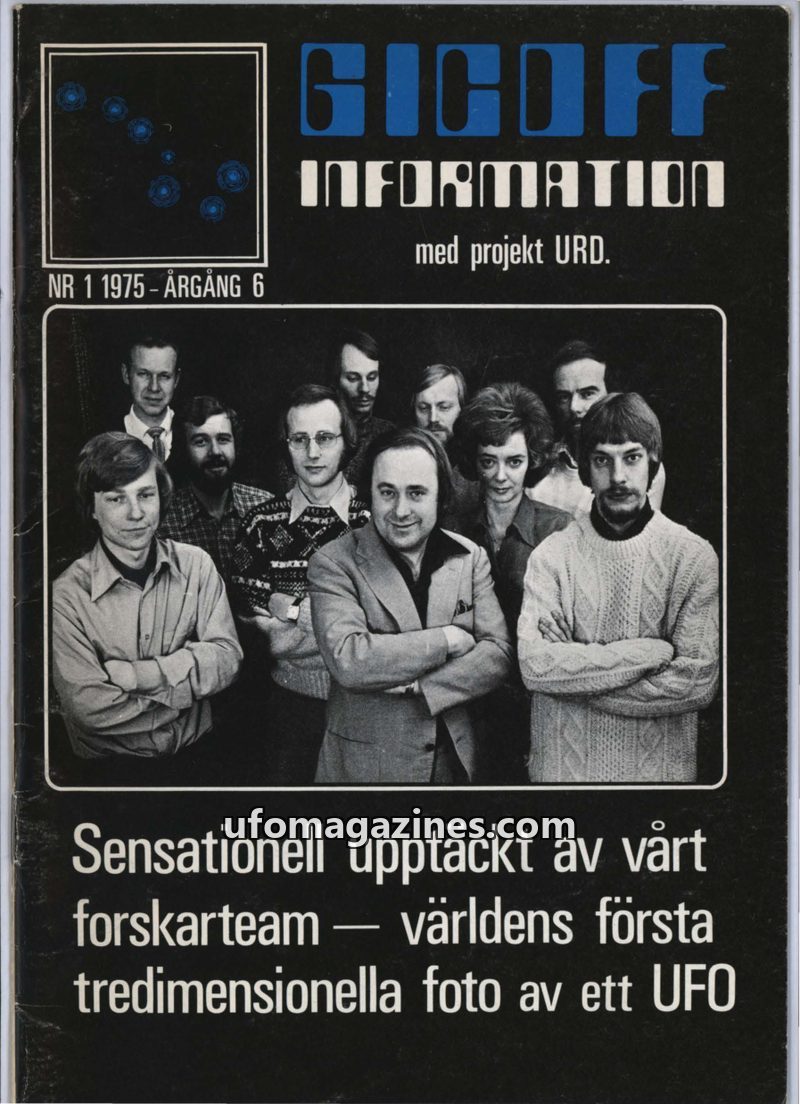 This issue of GIGOFF INFORMATION focuses on the presentation of the world's first three-dimensional photograph of a UFO, taken by Lars Thörn in 1971. The magazine details the photo
