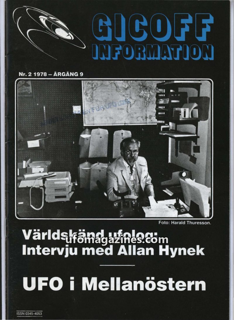 This issue of GICOFF INFORMATION from 1978 delves into various UFO phenomena. It includes an interview with renowned ufologist J. Allen Hynek, who discusses his shift from explaini