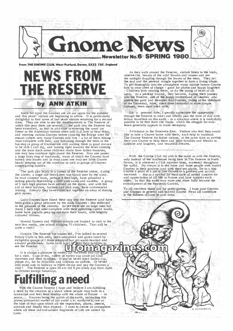 This issue of Gnome News from December 1979 delves into the personal joys of gnomes and their connection to nature, as articulated by Ann Atkin. It also features discussions on org
