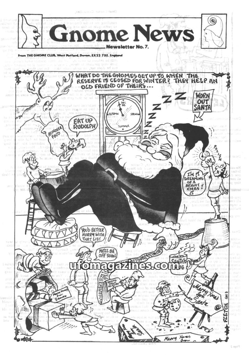 This issue of Gnome News, Newsletter No. 7, from The Gnome Club, features a cover story about gnomes helping Santa Claus. It includes reader letters sharing personal gnome experien