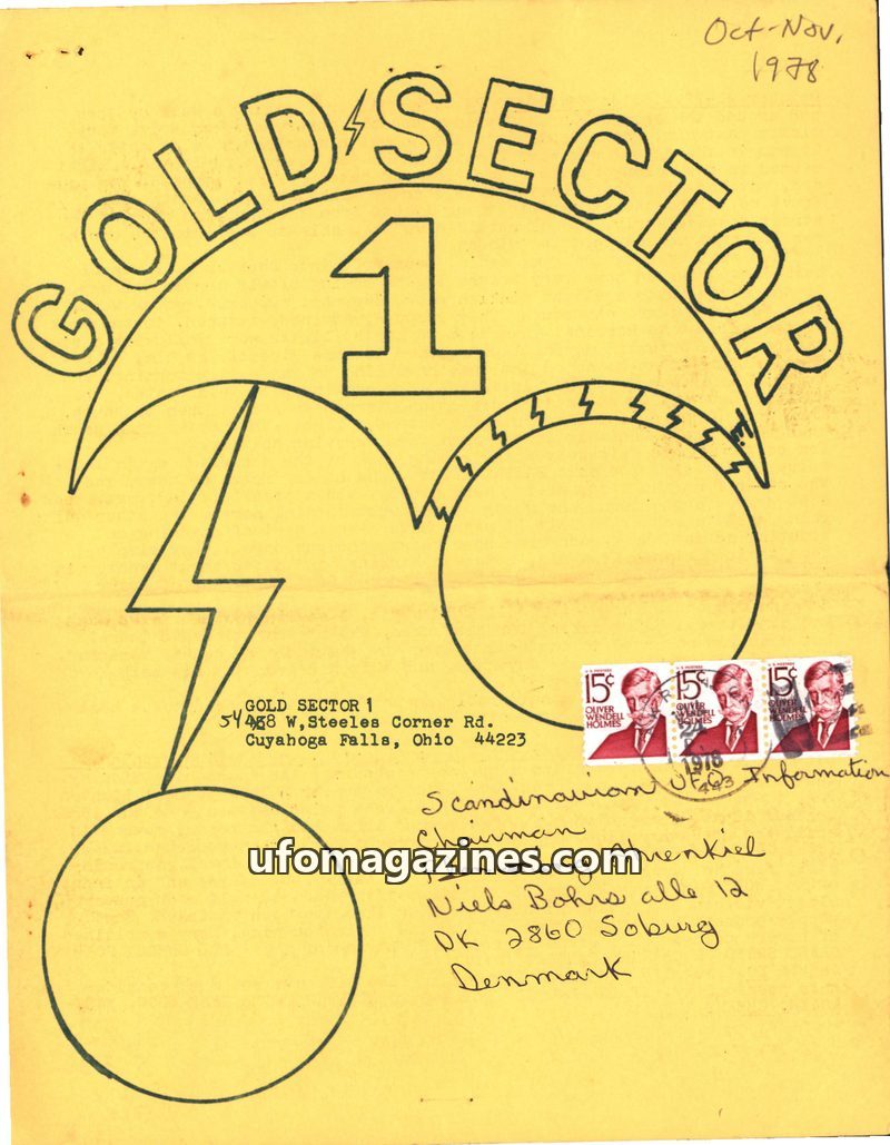 This issue of Gold Sector 1 magazine, dated October-November 1978, details numerous UFO sightings and alleged extraterrestrial encounters. Reports include observations of unusual l