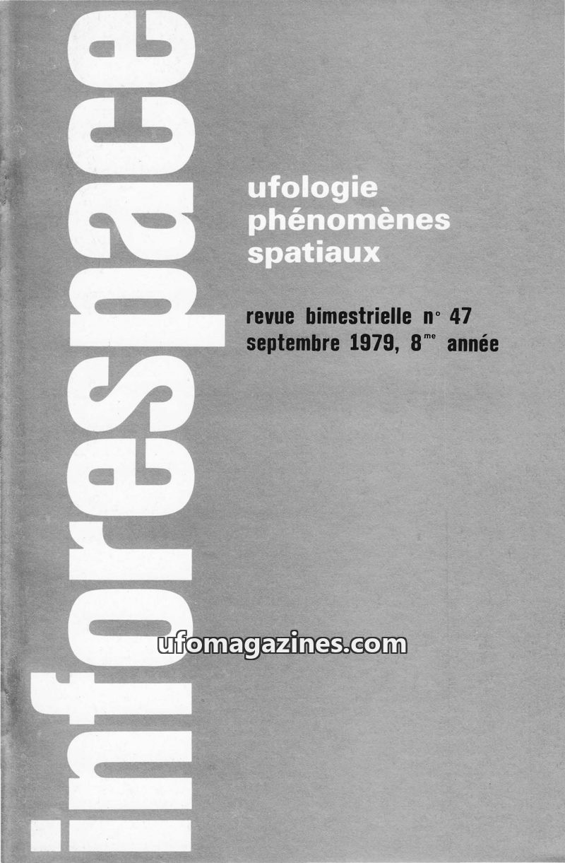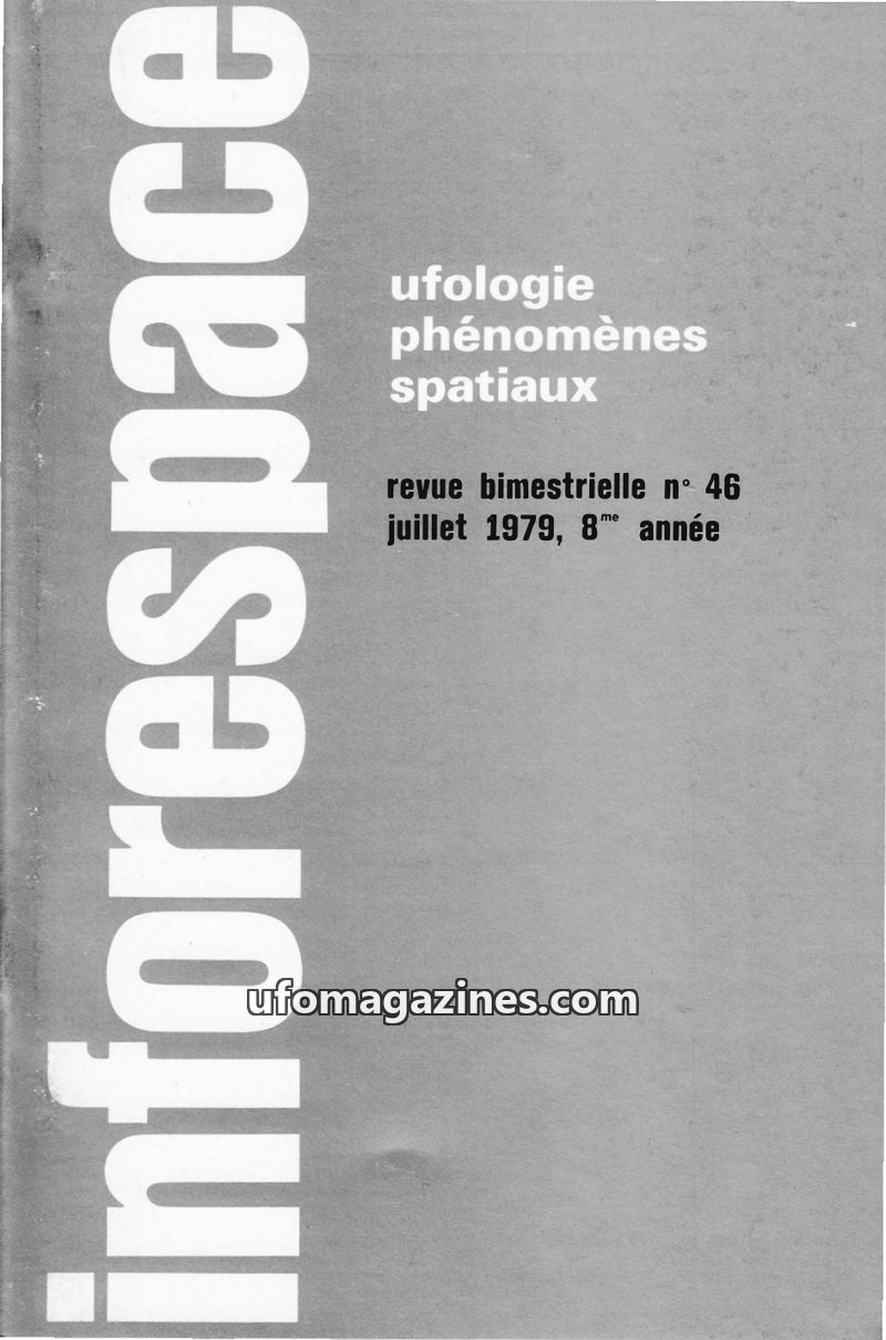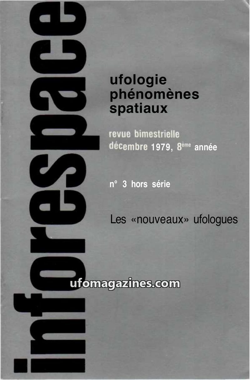 This issue of Inforespace, dated July 1979, focuses on ufology and spatial phenomena. It includes an analysis of the relationship between UFO sightings and solar activity, using sp