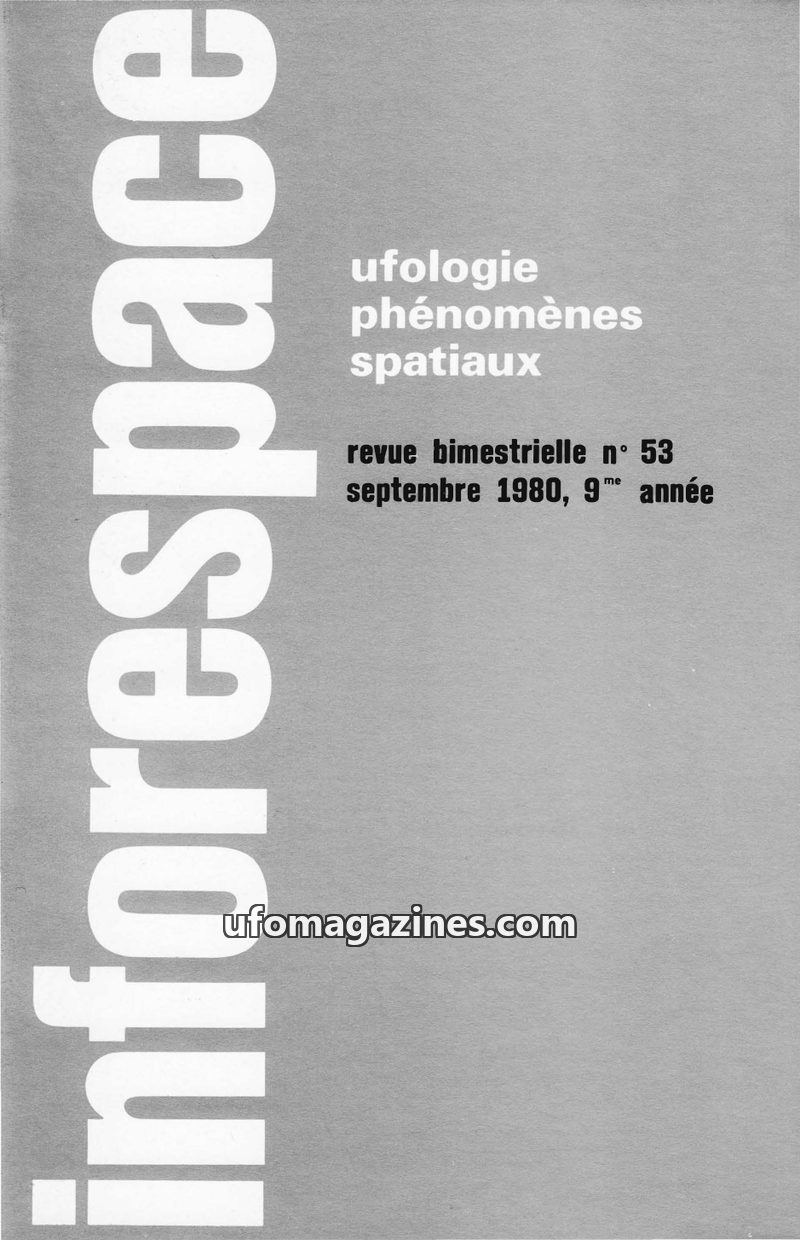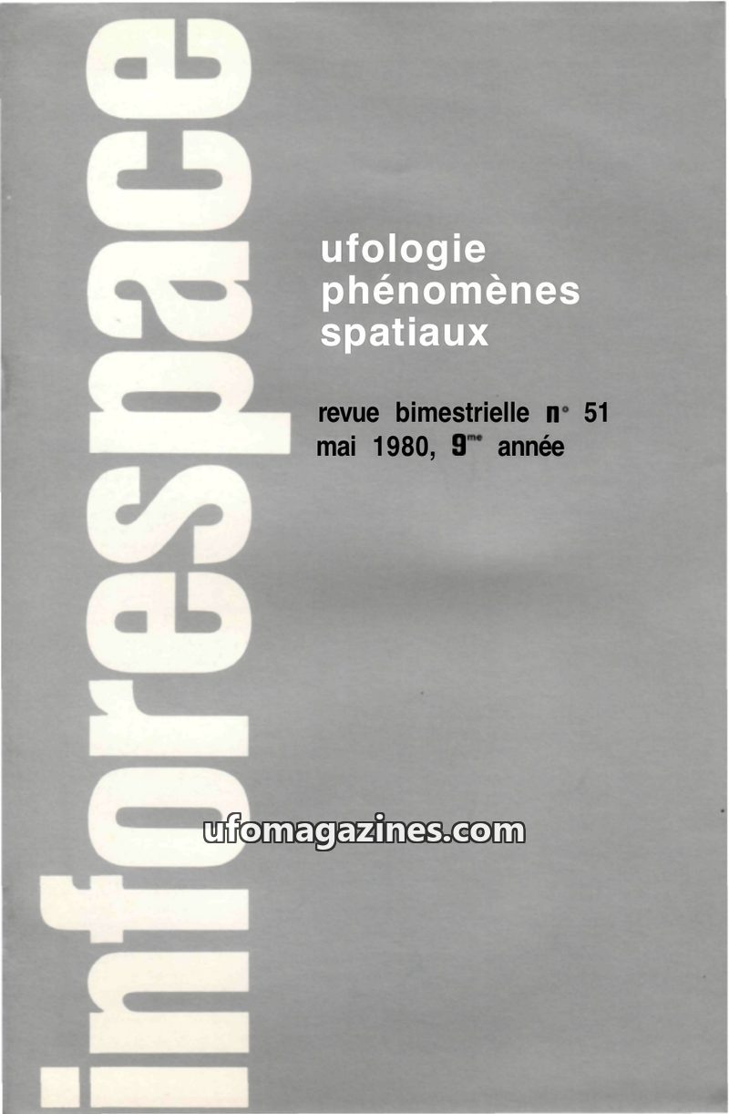 This issue of 'Inforespace' (No. 50, March 1980) delves into ufology and space phenomena, with a significant focus on the Quarouble case from 1954. The editorial highlights the cha