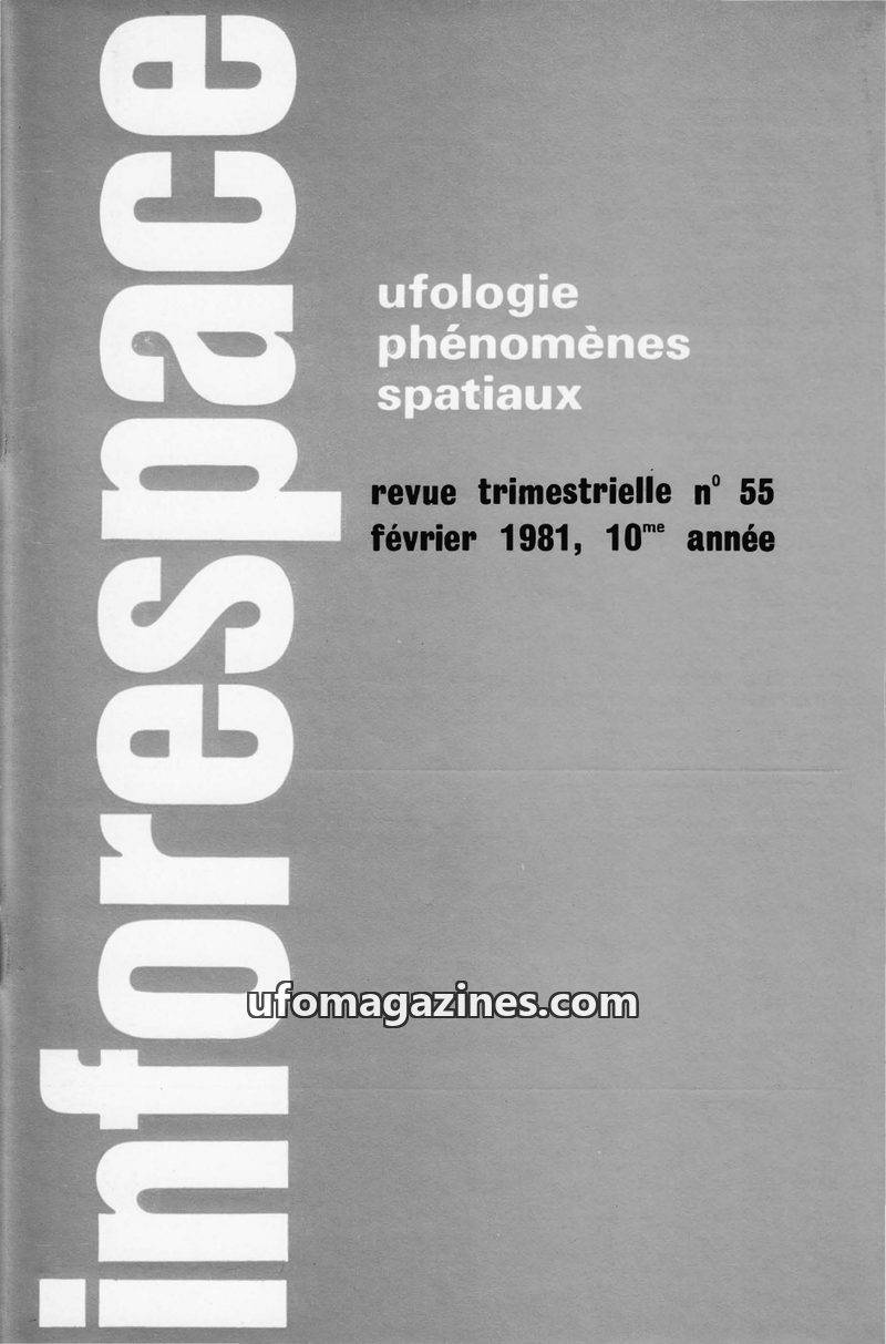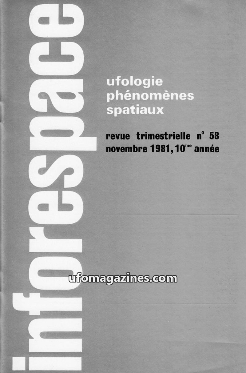 This issue of Inforespace (November 1981) delves into ufology and spatial phenomena. It includes an editorial discussing recent surveys on UFO belief in France, revealing approxima